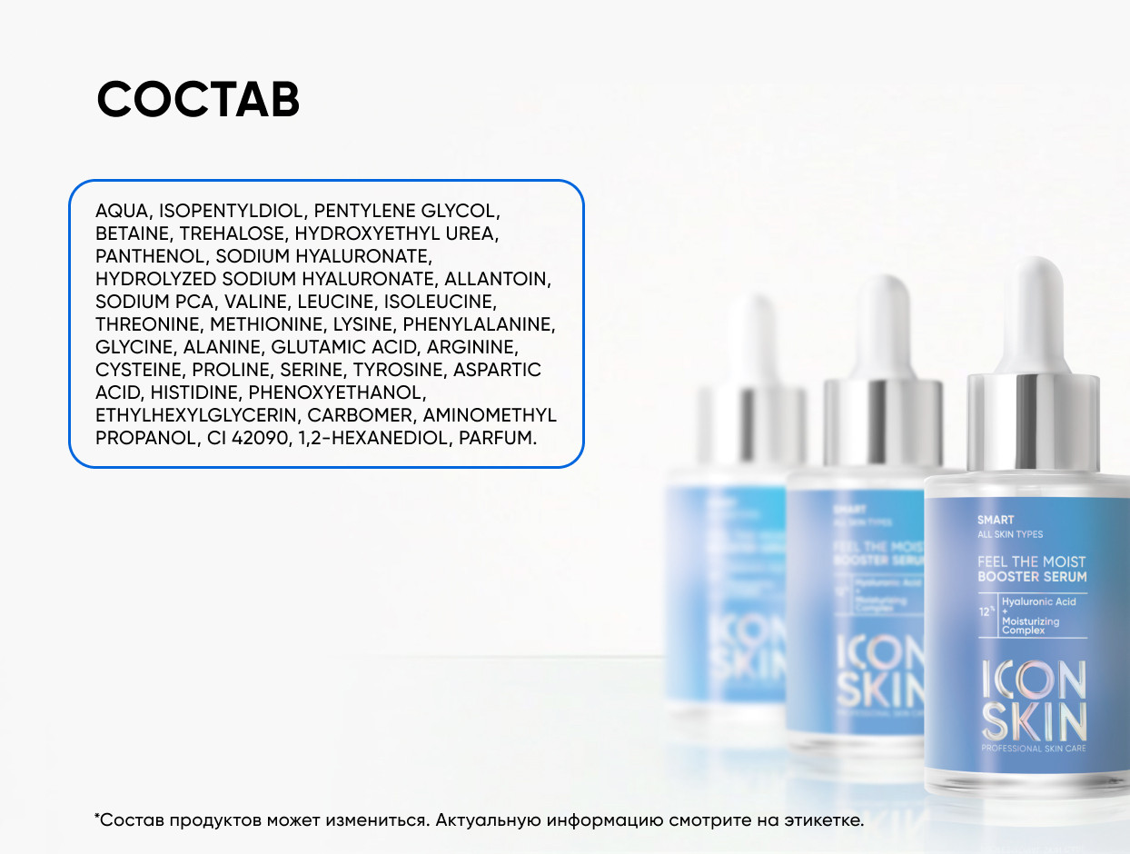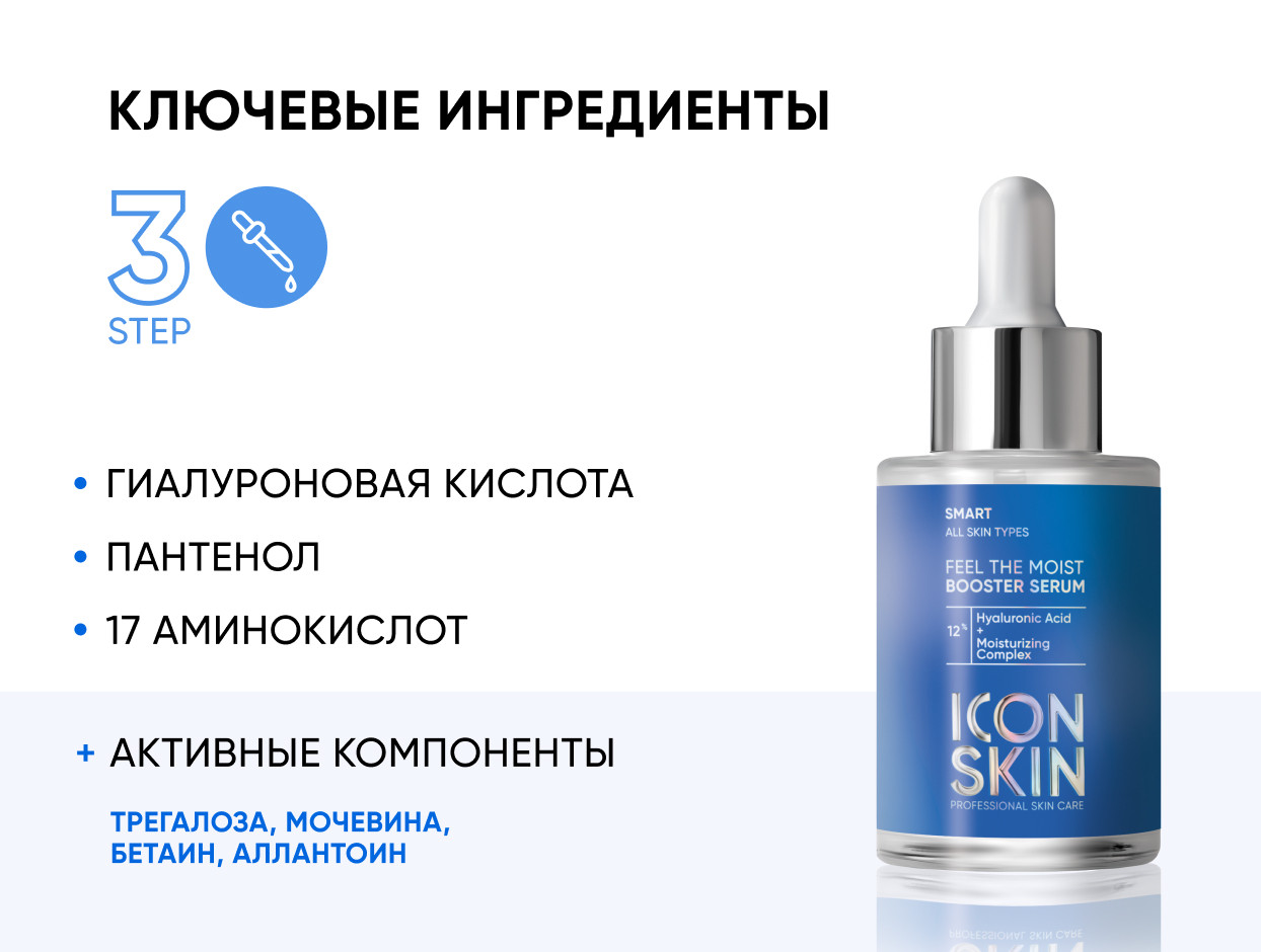 ICON SKIN SMART Увлажняющая сыворотка-концентрат с гиалуроновой кислотой FEEL THE MOIST 30 мл