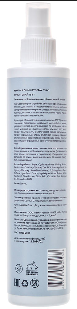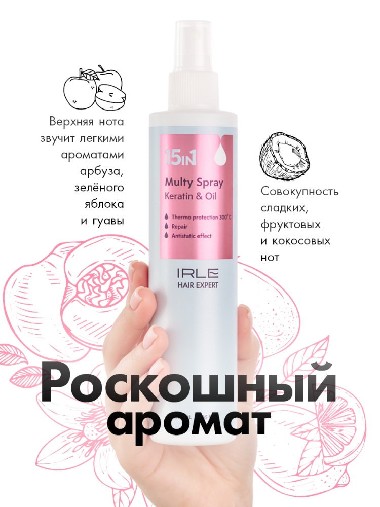 IRLE Мульти Спрей 15 в 1 (Keratin & Oil Multy Spray 15 in 1), 250 мл