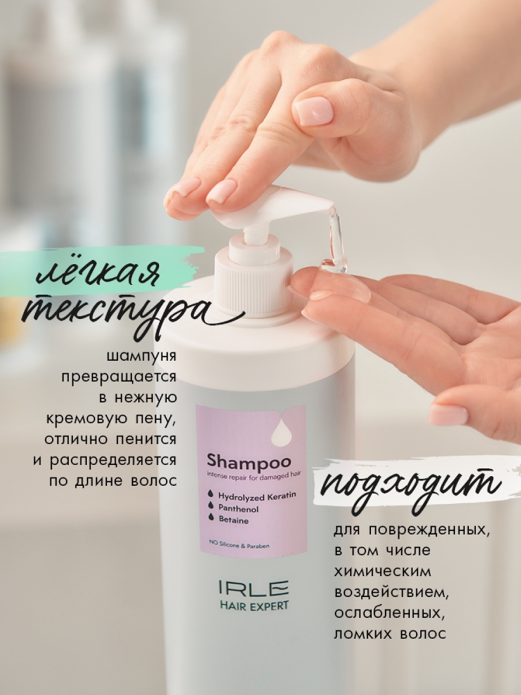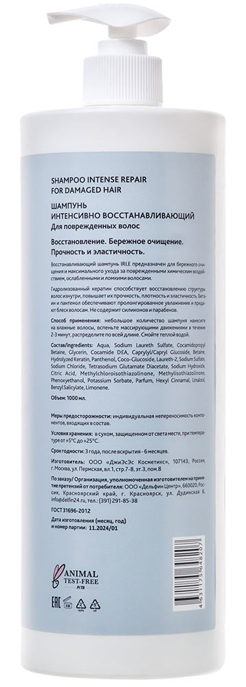 IRLE Шампунь интенсивно восстанавливающий для повреждённых волос, 1000 мл
