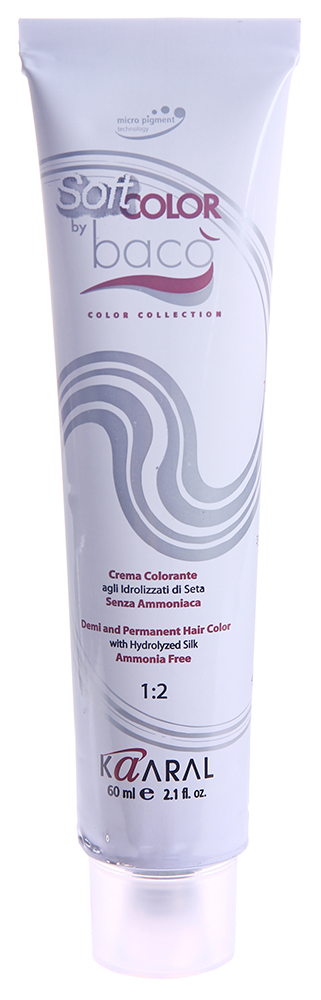 Перманентный безаммиачный крем-краситель Kaaral Baco Soft Color относится к красителям премиум класса и гарантирует максимально стойкое окрашивание, полное покрытие седины, яркий насыщенный цвет и бережный уход за локонами во время всей процедуры.Особенностью данной является уникальная технология Micro Pigment Technology. Молекулы красящего пигмента, благодаря маленькому атомному весу, с легкостью проникают в глубокие слои кортекса, надежно закрепляются и обеспечивают невероятно стойкое и равномерное покрытие. Продукт может использоваться для всех техник окрашивания: тонирования и коррекции цвета, тон в тон и светлее до 3-х оттенков, что делает его универсальным и прекрасным средством достижения необходимого результата.В состав краски входит ухаживающий комплекс, основанный на сочетании гидролизатов натурального шелка и риса. Их комбинированное воздействие разглаживает поверхность каждого волоска, уплотняет структуру прядей, наполняет локоны удивительной силой и мерцающим блеском. Алоэ вера и провитамин В5 уб