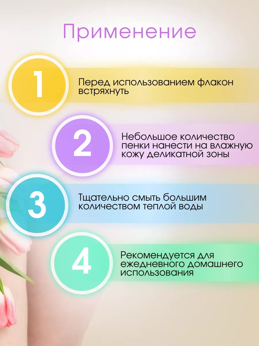 Перед использованием флакон встряхнуть. Небольшое количество пенки нанести на влажную кожу деликатной зоны. Тщательно смыть большим количеством теплой воды. Рекомендуется для ежедневного домашнего использования.