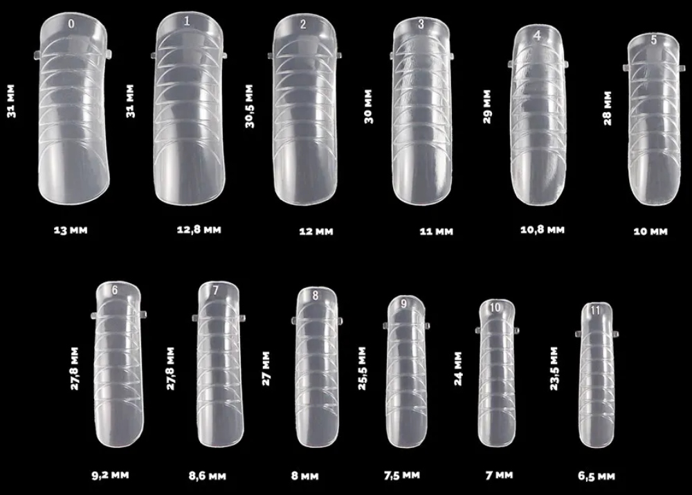 Верхние формы для наращивания и моделирования ногтей. Идеально подходят для работы с полигелем «ShapeNail». Технология моделирования при помощи верхних форм ускоряет работу мастера за счет быстрой выкладки и минимального опила. Легко можно смоделировать как длинные, так и короткие ногти. Имеют 12 размеров и 4 вида для более точного подбора под ногти клиента.