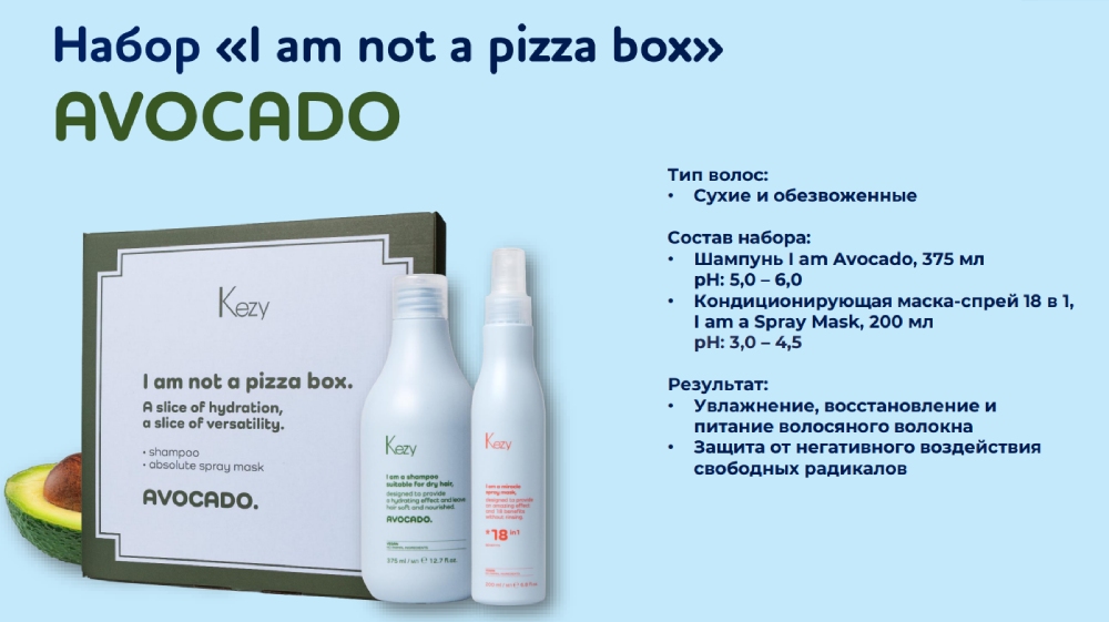 KEZY AVOCADO Набор "Я не пицца" (шампунь 375 мл и маска-спрей 18 в1 200 мл)