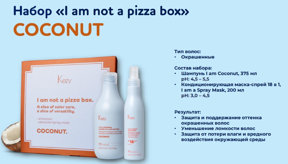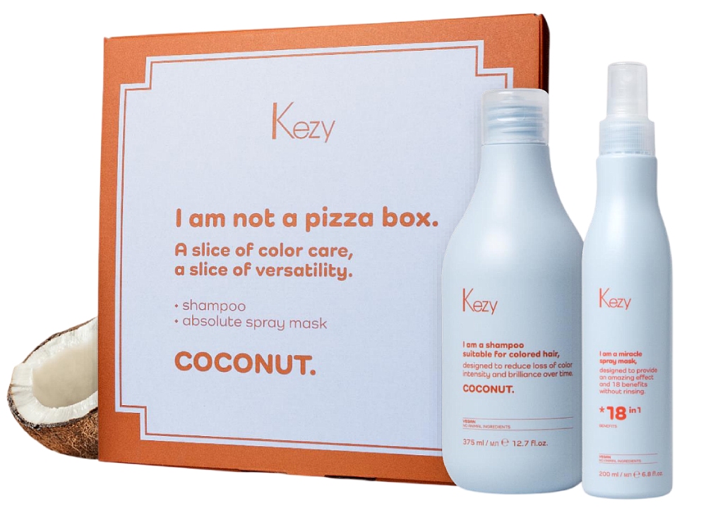 KEZY COCONUT Набор "Я не пицца" (шампунь 375 мл и маска-спрей 18 в1 200 мл)
