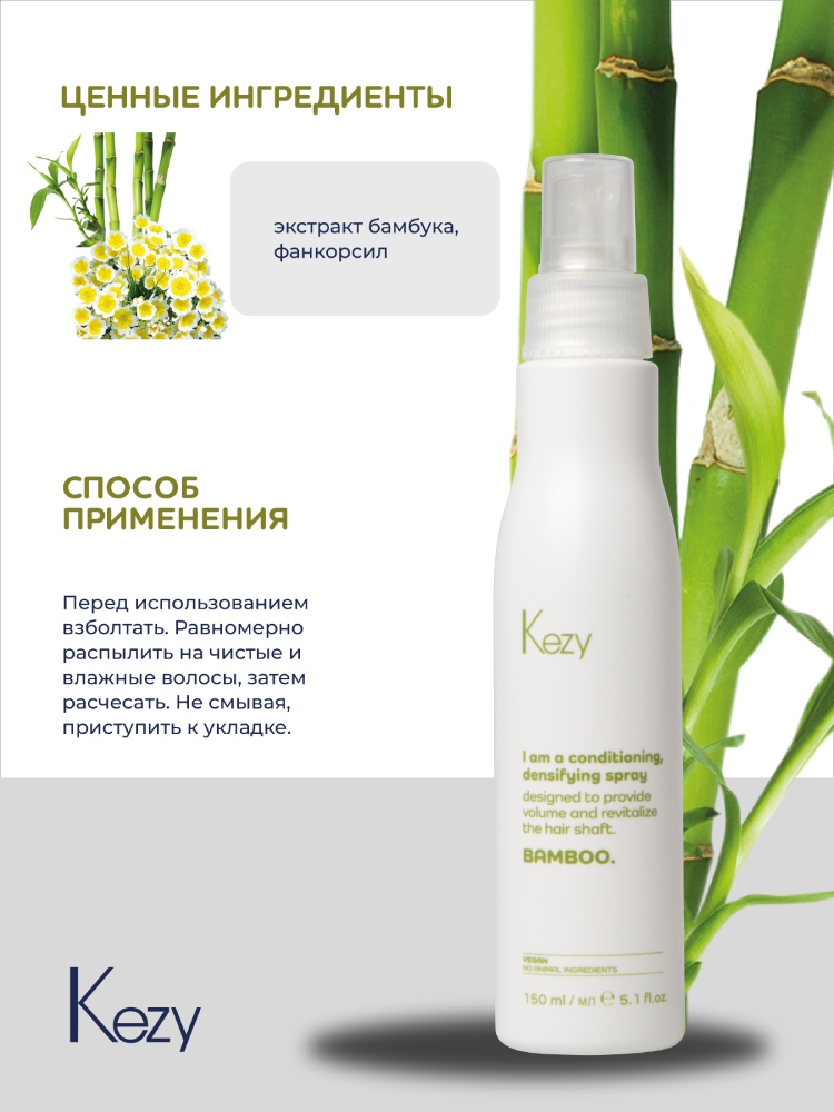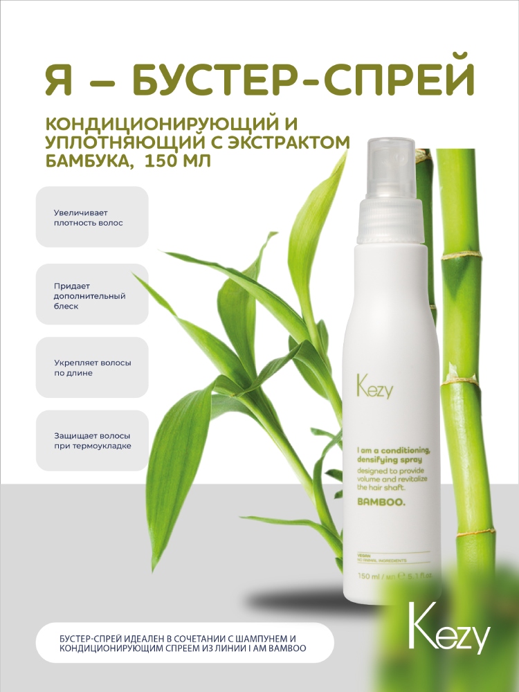 Kezy I am BAMBOO Кондиционирующий и уплотняющий бустер-спрей с экстрактом бамбука, 150 мл.