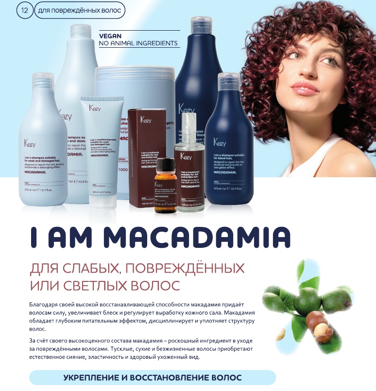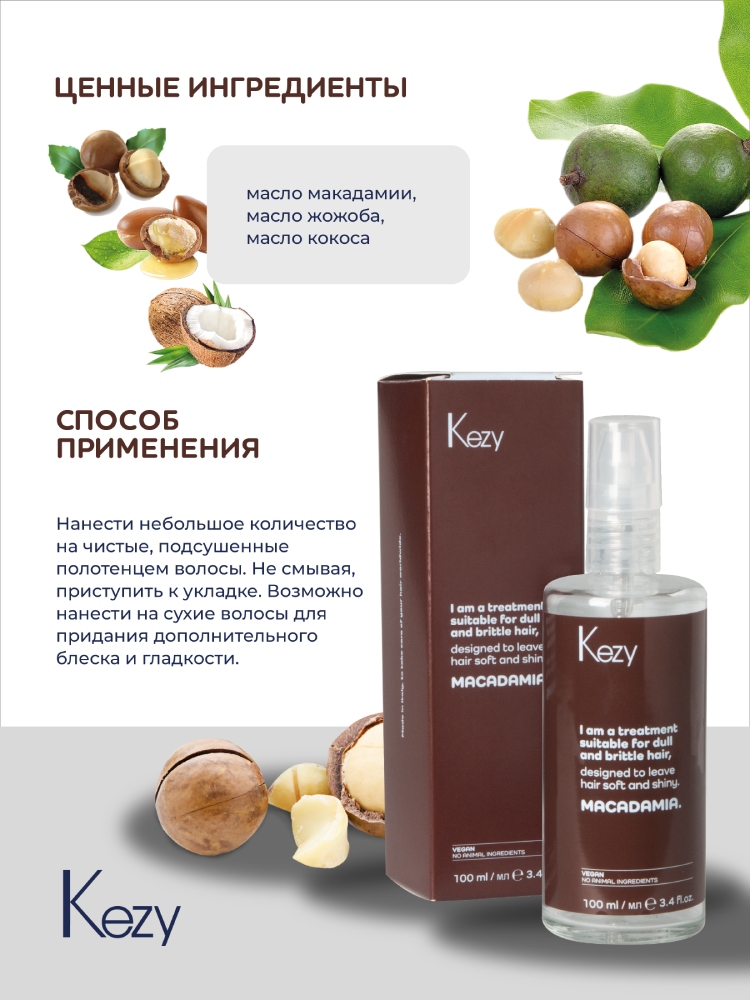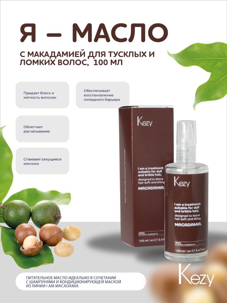 Kezy I am MACADAMIA Масло для волос с макадамией для тусклых и ломких волос, 100 мл.