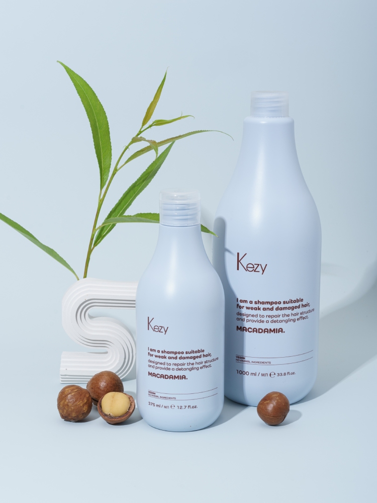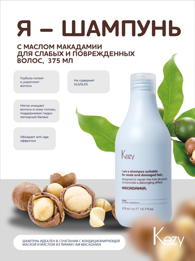 Kezy I am MACADAMIA Шампунь с маслом макадамии для слабых и поврежденных волос, 375 мл.