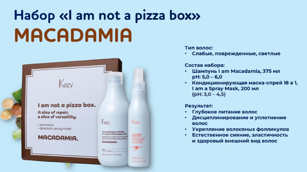 KEZY MACADAMIA Набор "Я не пицца" (шампунь 375 мл и маска-спрей 18 в1 200 мл)
