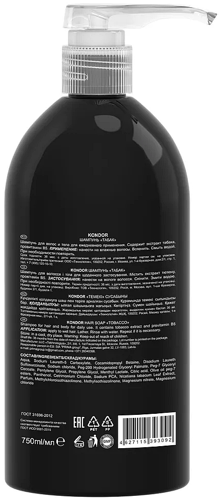 KONDOR Hair&Body Шампунь Табак универсальный 750 мл