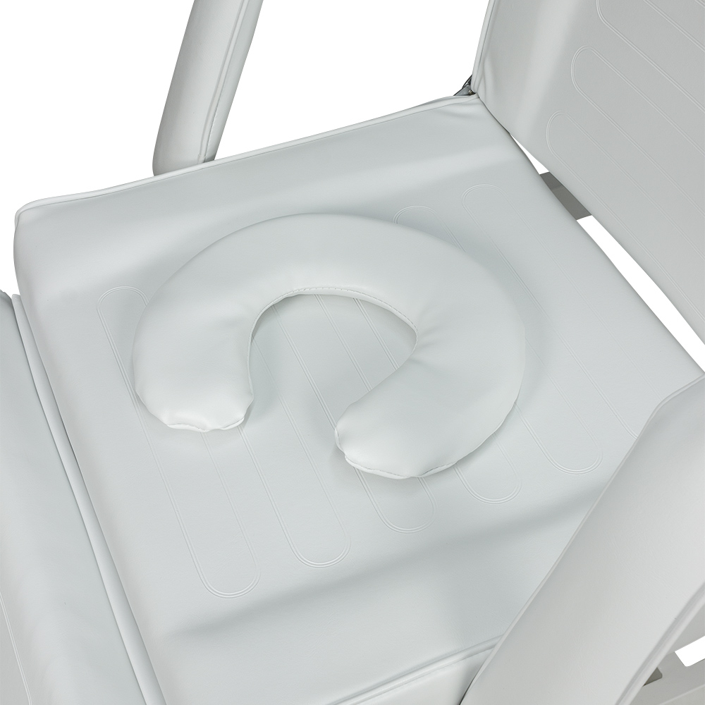 Классическое косметологическое кресло. Регулировка высоты подъема осуществляется с помощью электромотора. Спинка и ножная часть регулируются механически. Подлокотники съемные. В кресле предусмотрено отверстие для лица, закрытое подушкой. Каркас кресла металлический, из усиленного профиля, что делает кресло устойчивым от опрокидывания. Размеры (ДхШхВ): 1900х610х700 - 800 мм. Ширина кресла с подлокотниками - 850 мм. Цвета складской программы: белый. Производитель Китай.