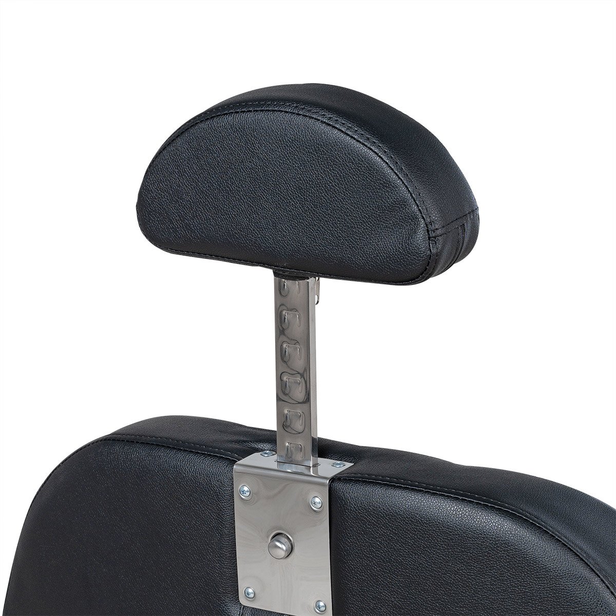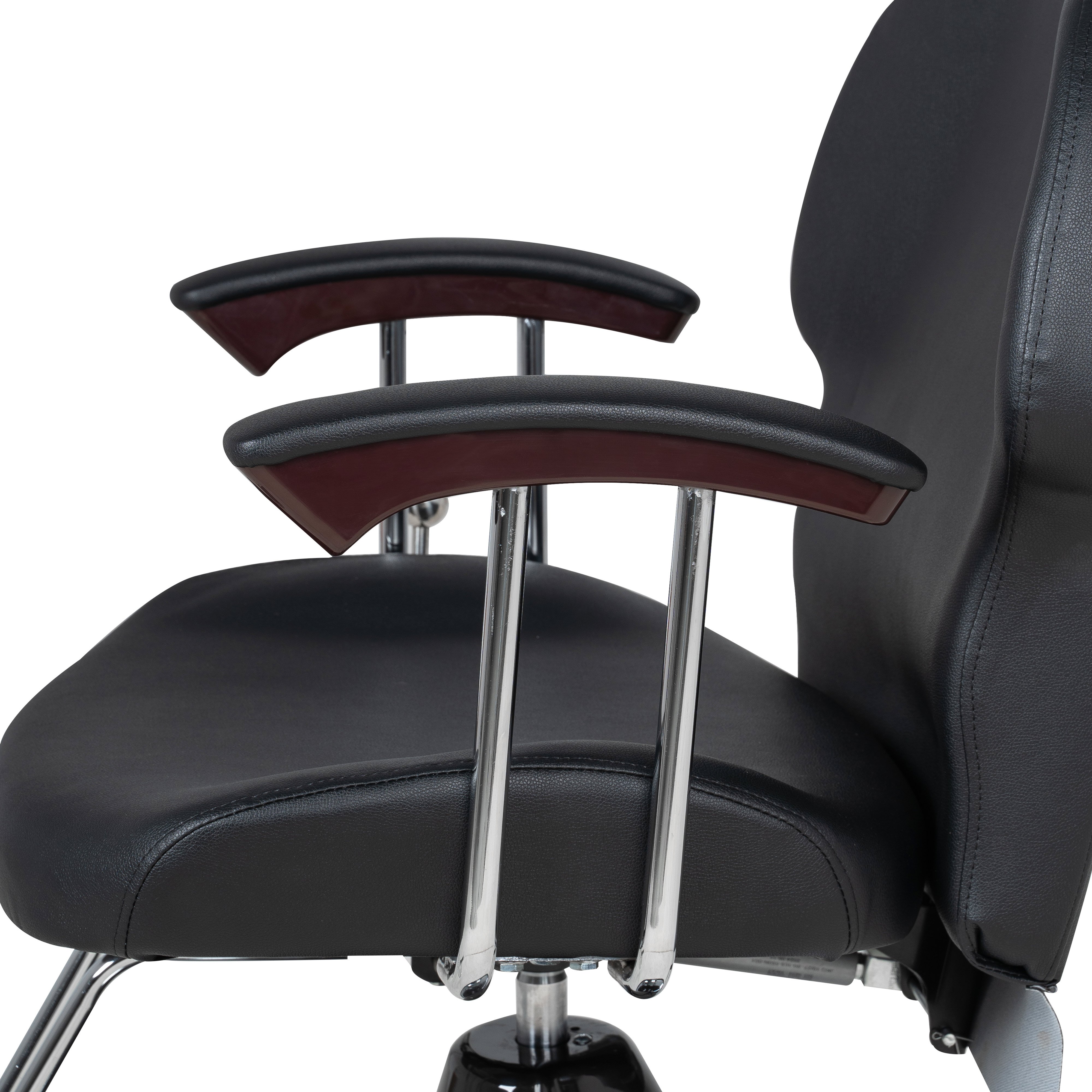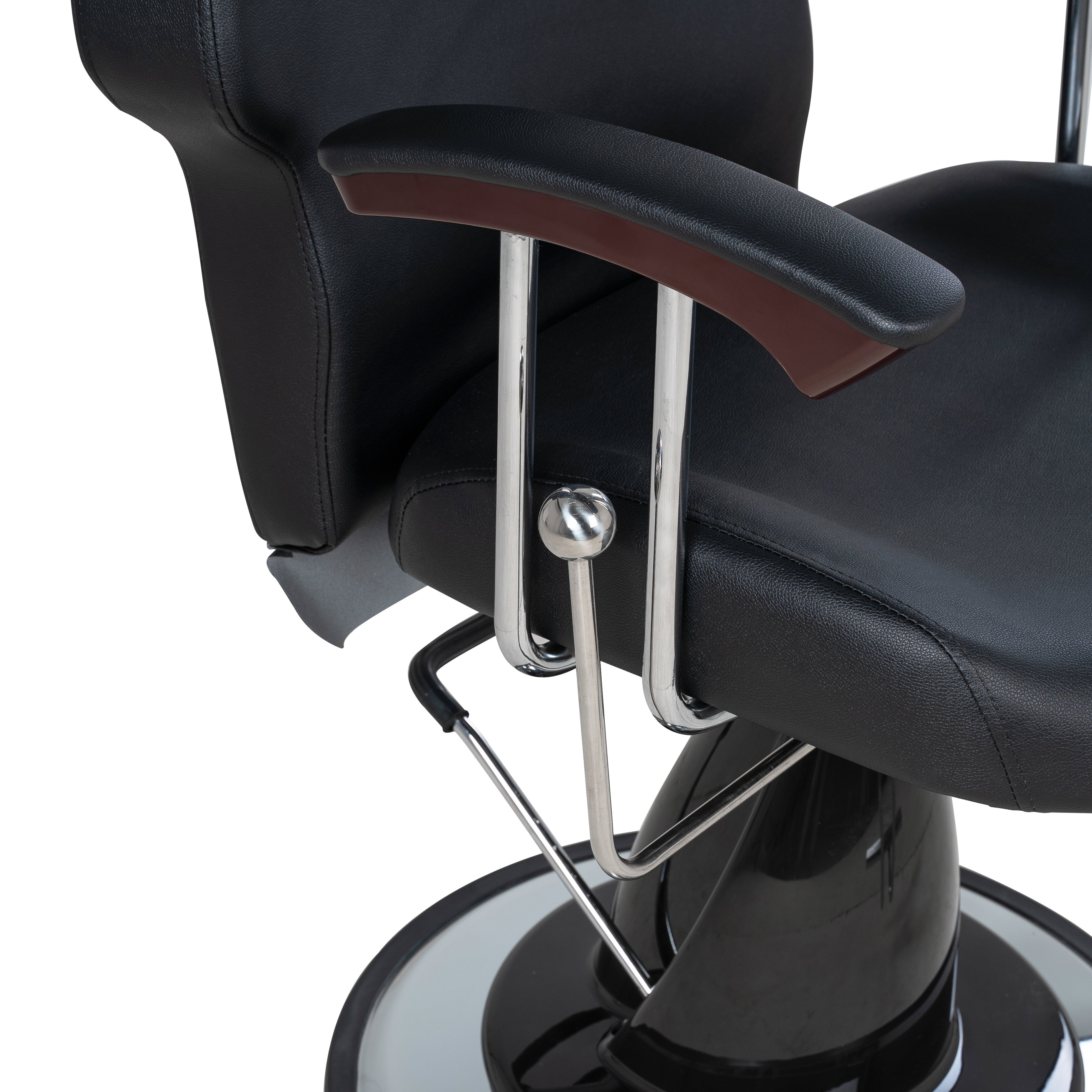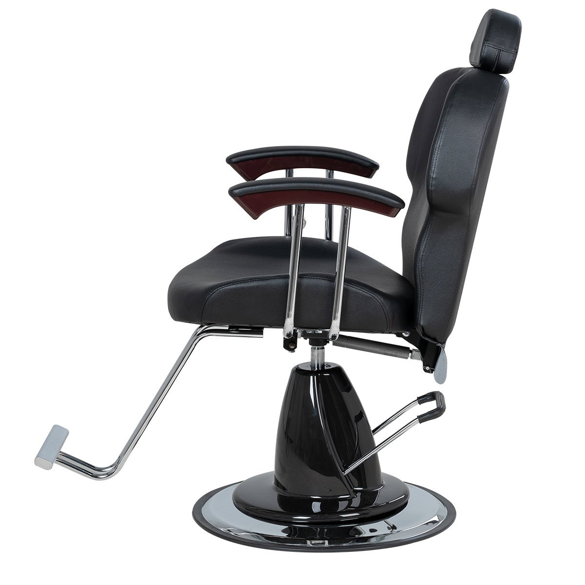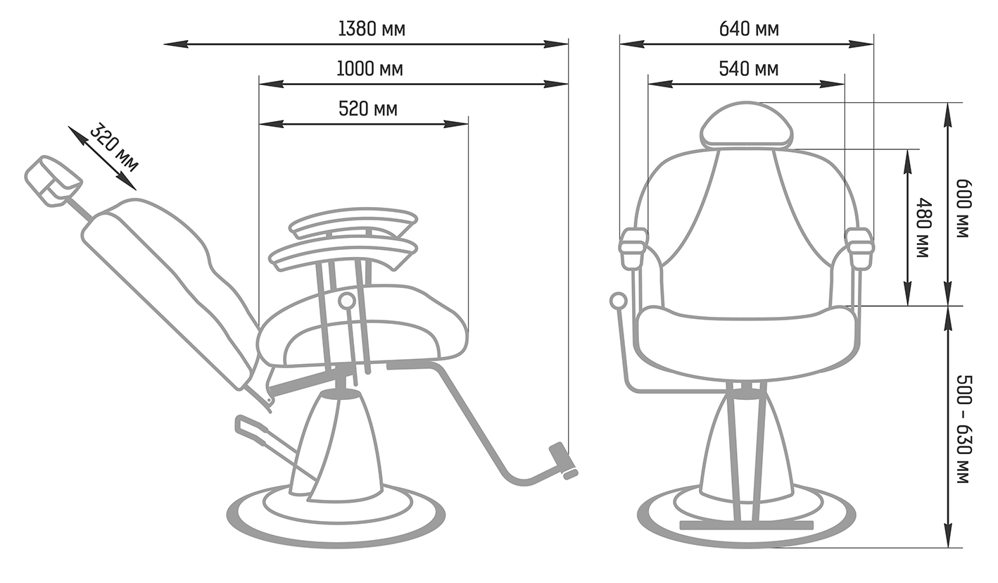 Парикмахерское кресло МД-9229 с откидной спинкой Производитель: Китай. Комплектация: сидение, откидная спинка, подлокотники, подголовник, подножка, основание-диск, гидроподъёмник. Характеристики парикмахерского кресла МД-9229 с откидной спинкой: Ширина внутренняя: 54 см; Ширина с локтями: 64 см; Глубина внутренняя: 52 см; Глубина вместе с ножкой: 100 см; Высота спинки с подголовником / без него: 60 см / 48 см; Подъём подголовника: 32 см; Глубина в разложенном виде: 138 см; Высота минимальная / максимальная: 50 см / 63 см; Обивка мягких частей: эластичный пенополиуретан, обшивка из износостойкой экокожи чёрного цвета с матовой текстурой; Подлокотники: деревянные с кожаной накладкой; Подножка: из высокопрочной стали; Основание: устойчивое уплотнённое основание в виде металлического диска; Регулировка высоты: гидравлический подъемник. Парикмахерское кресло МД-9229 с откидывающейся спинкой сочетает в себе стиль, удобства и надёжность. В таком кресле каждый клиент сможет насладиться про