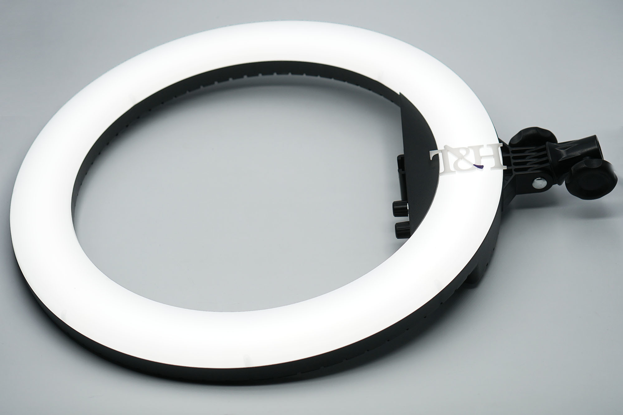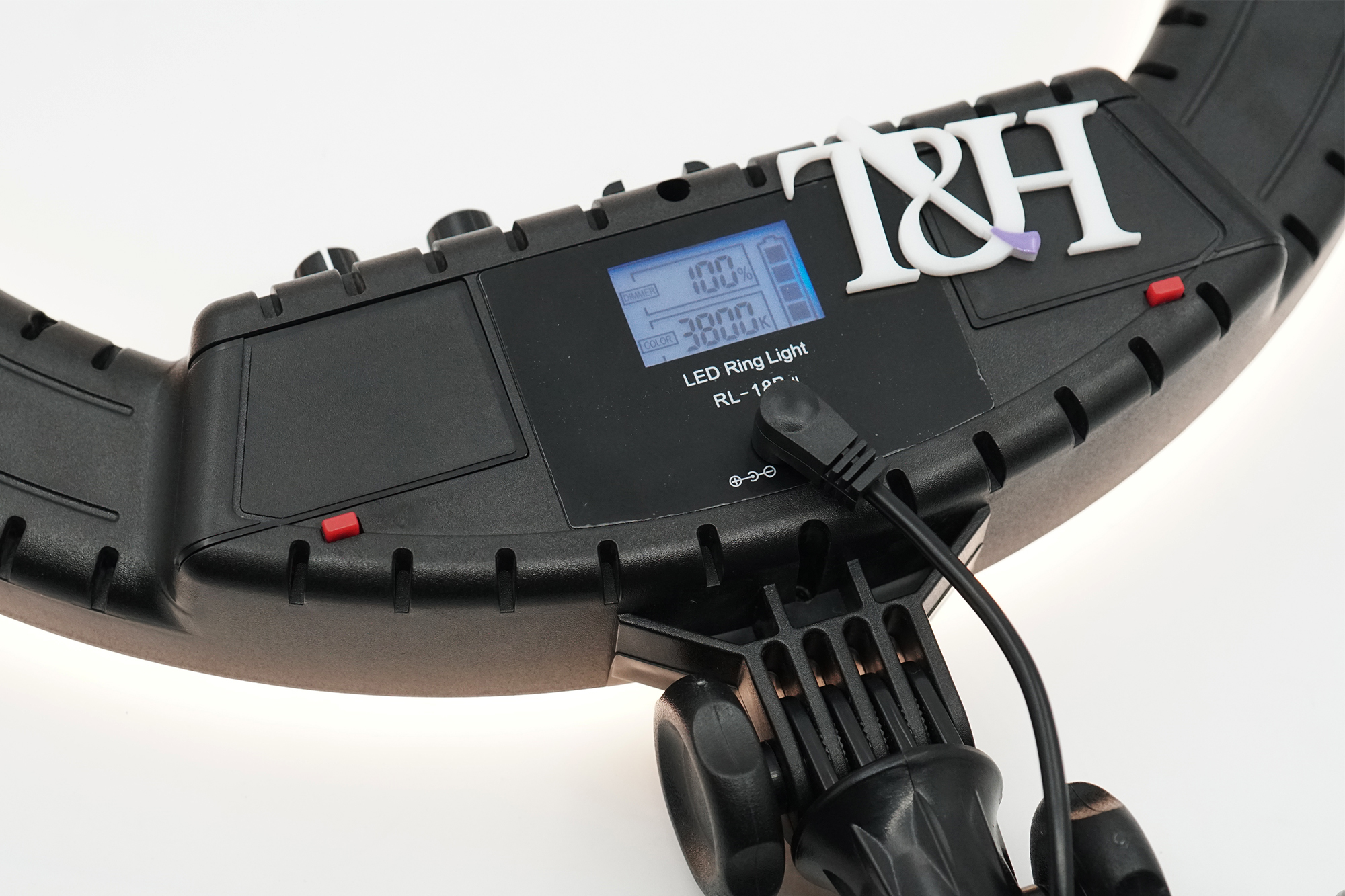 Кольцевая светодиодная лампа RL-18B ll - светодиодный кольцевой осветитель с дисплеем Кольцевая лампа подходит для визажистов, стилистов, косметологов, парикмахеров, татуировщиков, фотографов, видеографов, блоггеров и всех, кому необходим естественный свет. Круглая форма осветителя позволяет расположить его центральную ось на оптической оси объектива, таким образом получить равномерное освещение объекта. Преимуществом светодиодных осветителей является излучение сбалансированного светового потока, низкое тепловыделение, малая потребляемая мощность и большой ресурс работы. Близость цветовых температур стробоскопических источников света (фотовспышек) и светодиодных осветителей позволяет без нежелательных искажений цветового баланса применять их совместно.В отличие от ламп со сменными фильтрами у лампы RL-18B ll широкий охват цветовой температуры от 3200К до 5600К, что позволяет настроить цвет свечения более подходящим под каждую ситуацию. Дисплей позволяет увидеть уровень яркости и температуры света, также заря