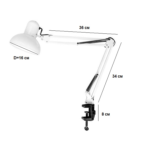 Лампа настольная на струбцине, белая, 001L