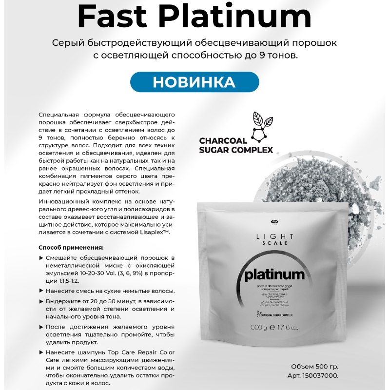 Lisap LIGHT SCALE PLATINUM POWDER 500гр.Быстродействующий компактный серый осветляющий порошок