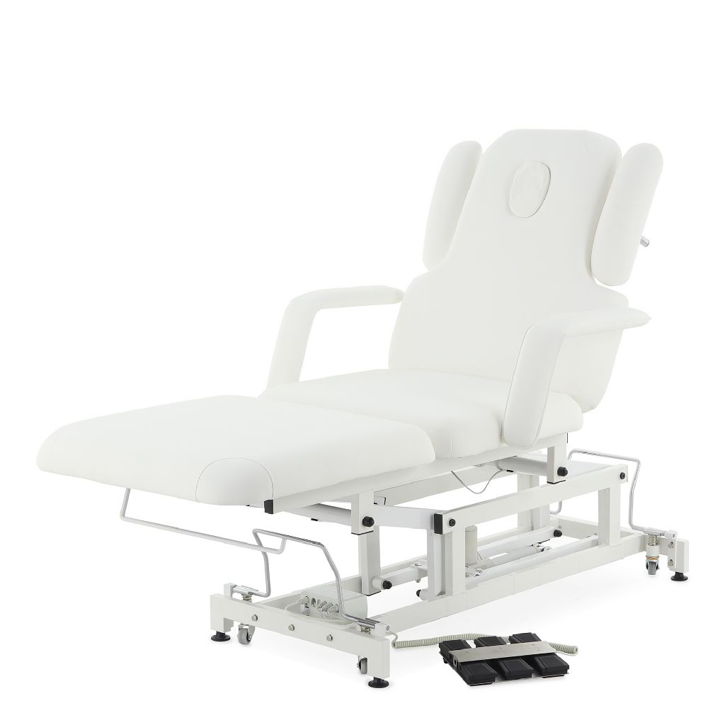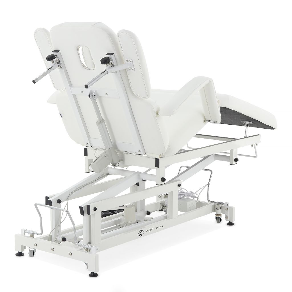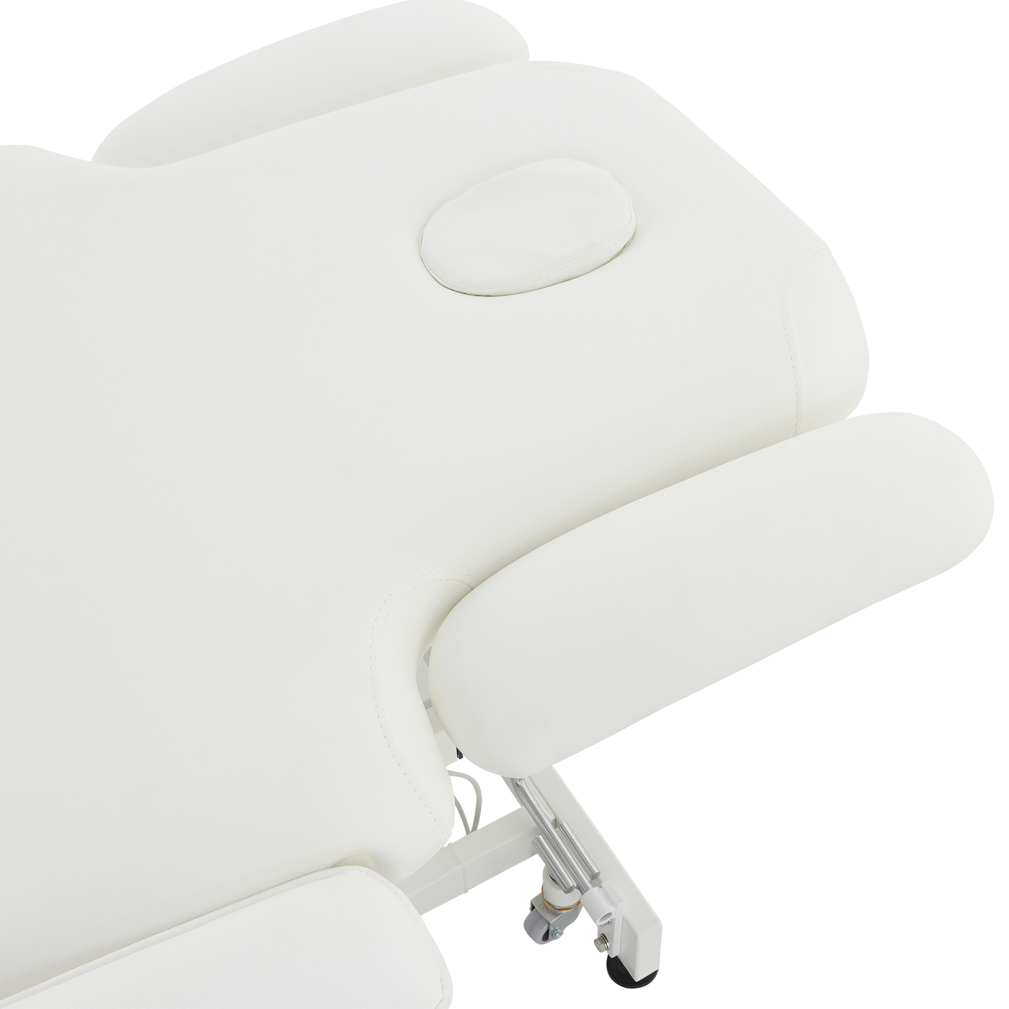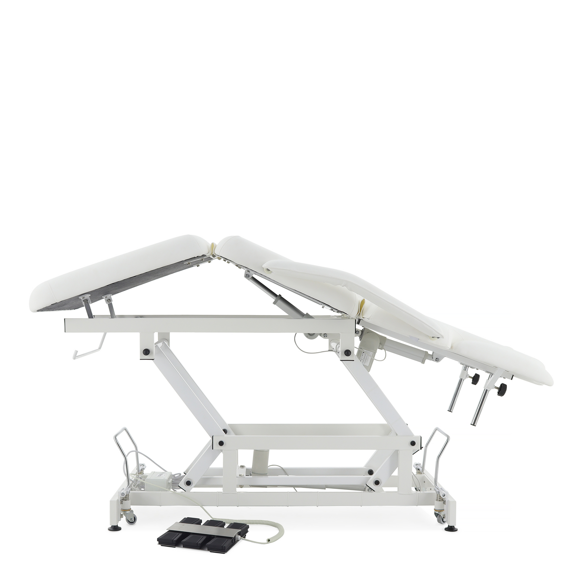 Массажный стол MMKM-2 (SE3.21.10) — функциональность и удобство «в одном флаконе». Здесь есть все, что необходимо специалисту, чтобы сделать процедуру максимально комфортной для пациента и удобной для себя. Рама изготовлена из прочной стали, выдерживает повышенную нагрузку. Специальная обработка позволяет значительно повысить ее устойчивость к коррозийным процессам. Поэтому ее можно без риска обрабатывать любым моющим средством (но быть осторожными с чересчур агрессивными). Кроме того, есть возможность самостоятельно регулировать высоту с помощью электропривода, работающего от пульта дистанционного управления. Ложемент представляет собой каркас, с увеличенной по толщине поролоновой прослойкой. Сверху — качественный винил-люкс, устойчивый к истиранию и мелким механическим повреждениям. Уход за ним не потребует больших затрат времени и сил. Ложе разделено на три секции, две из которых (спинная и тазобедренная) могут менять свой угол наклона с помощью того же электрического привода. Регулируемый массажный стол
