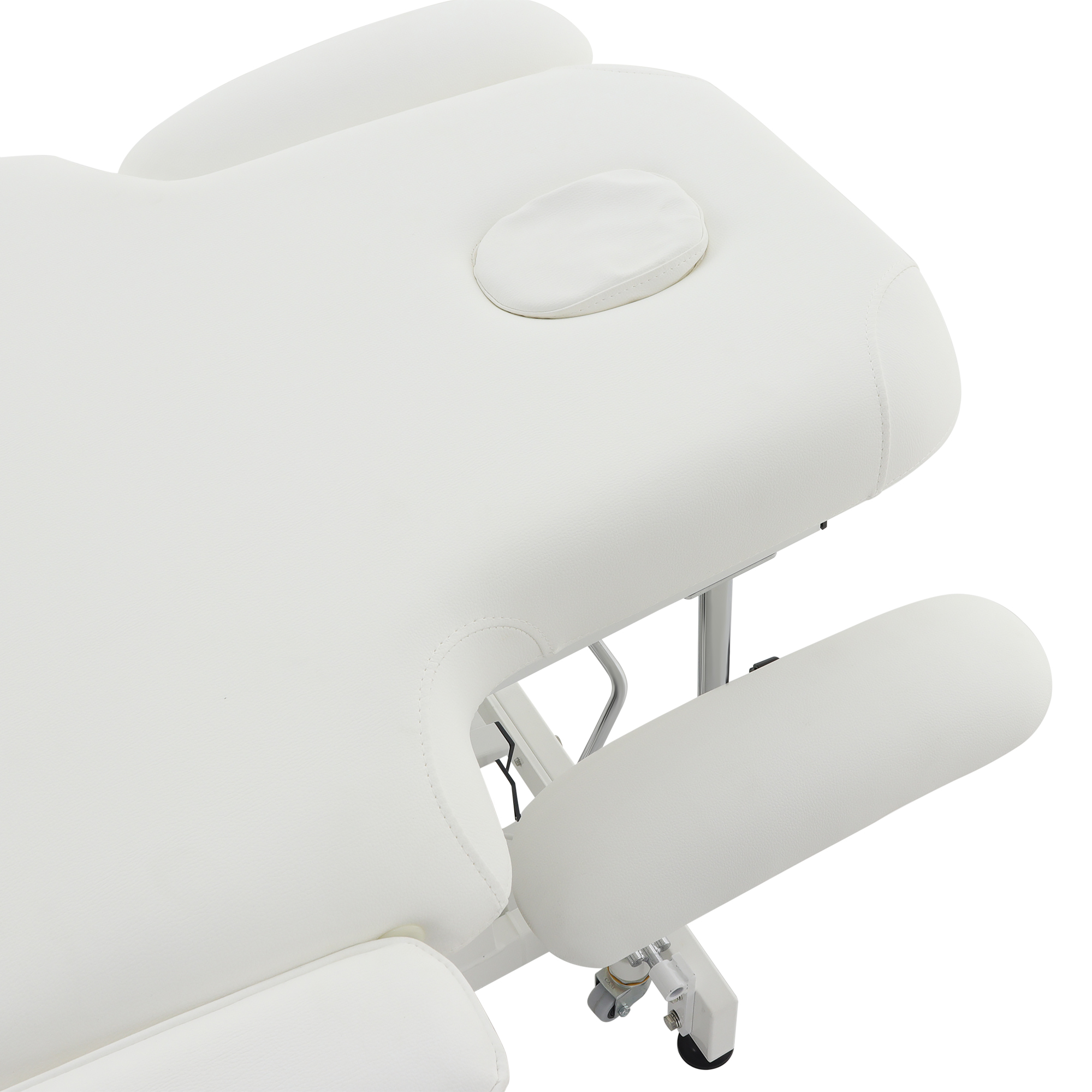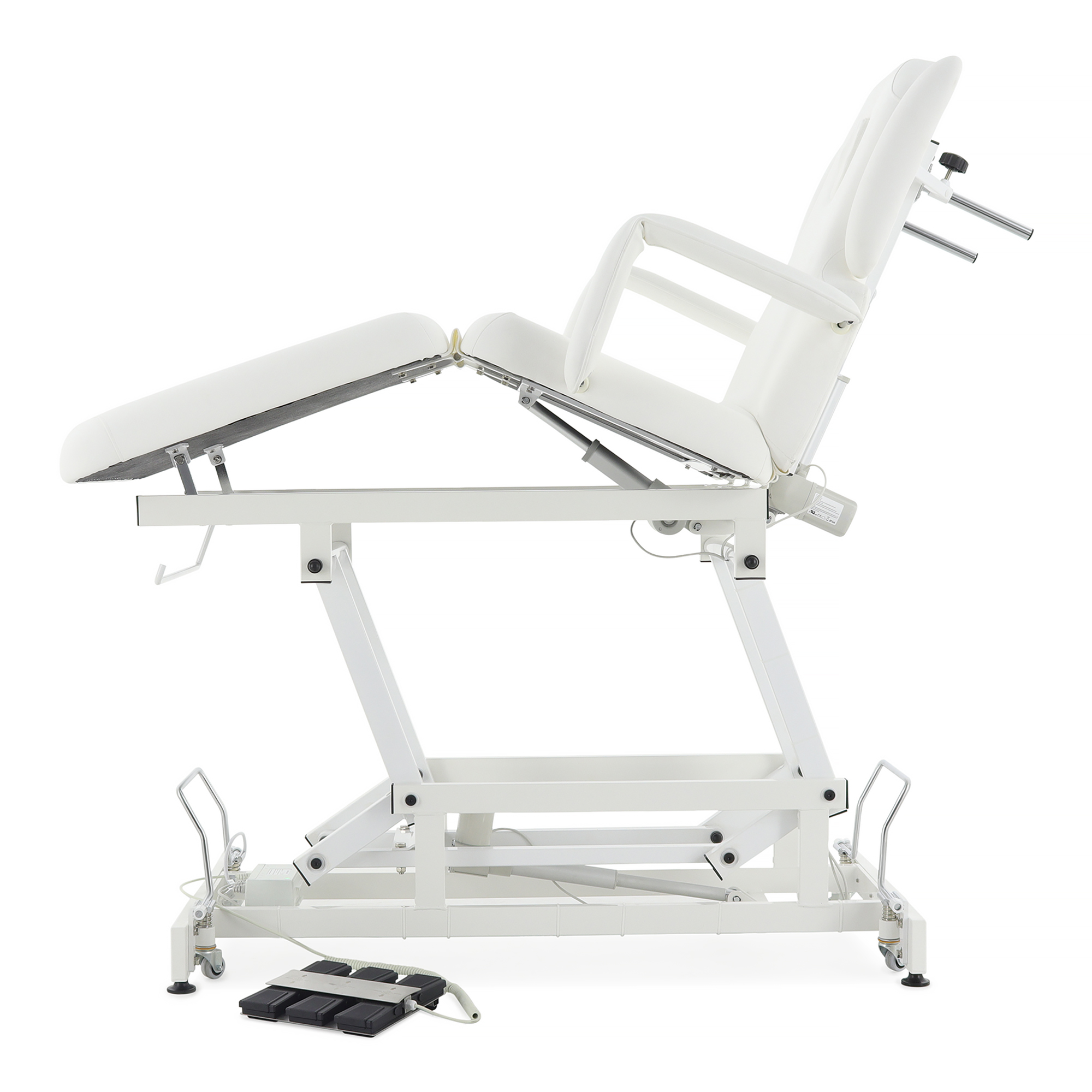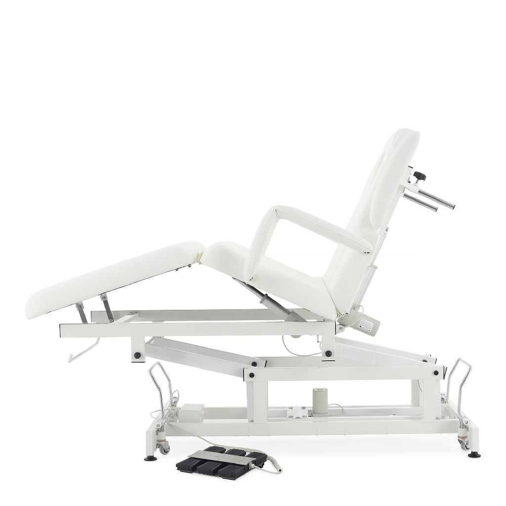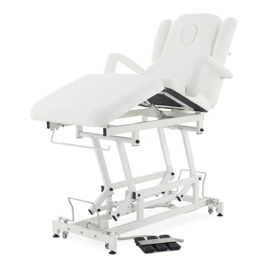 Массажный стол MMKM-2 (SE3.21.10) — функциональность и удобство «в одном флаконе». Здесь есть все, что необходимо специалисту, чтобы сделать процедуру максимально комфортной для пациента и удобной для себя. Рама изготовлена из прочной стали, выдерживает повышенную нагрузку. Специальная обработка позволяет значительно повысить ее устойчивость к коррозийным процессам. Поэтому ее можно без риска обрабатывать любым моющим средством (но быть осторожными с чересчур агрессивными). Кроме того, есть возможность самостоятельно регулировать высоту с помощью электропривода, работающего от пульта дистанционного управления. Ложемент представляет собой каркас, с увеличенной по толщине поролоновой прослойкой. Сверху — качественный винил-люкс, устойчивый к истиранию и мелким механическим повреждениям. Уход за ним не потребует больших затрат времени и сил. Ложе разделено на три секции, две из которых (спинная и тазобедренная) могут менять свой угол наклона с помощью того же электрического привода. Регулируемый массажный стол