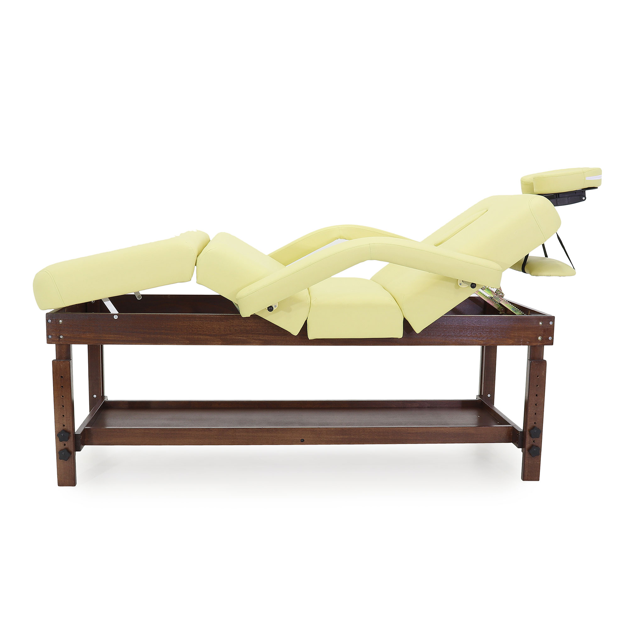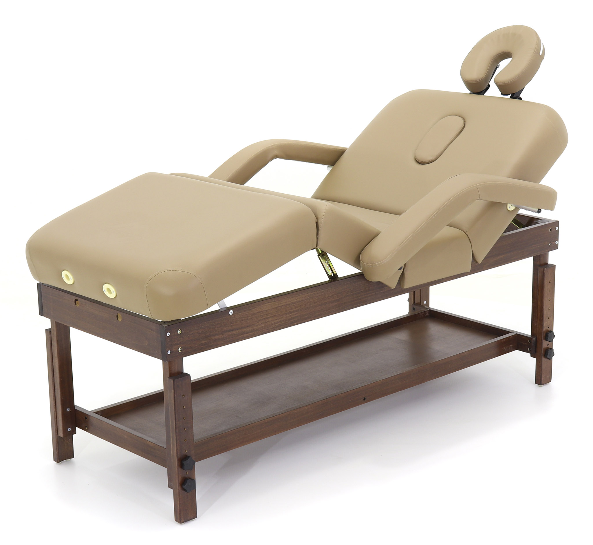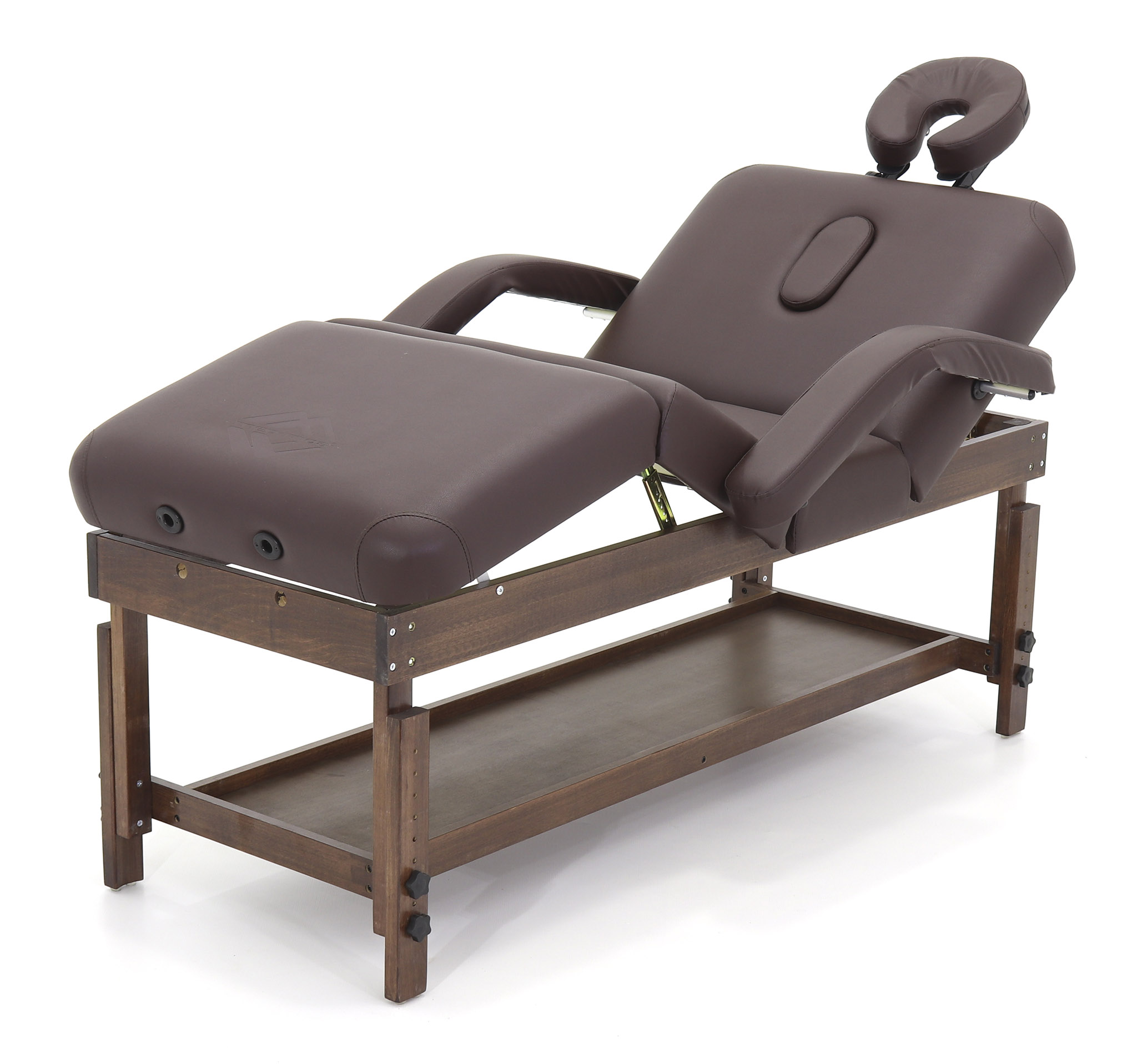 Стационарный массажный стол FIX-0A (МСТ- 15Л) отличается от своих «собратьев» не только широким функционалом, но и оригинальной конструкцией, которая придает процедурам не только максимальную пользу, но и комфорт. Его дизайн также весьма интересен, что делает его не только продуманным инструментом возврата здоровья, но и украшением кабинета специалиста по массажу. Стандартные размеры позволяют с удобством разместиться на нем пациентам любой комплекции (что заранее предусмотрено его создателями). При этом он способен выдерживать, благодаря прочной буковой раме, повышенные нагрузки. Ложемент разделен на пять секций, четыре из которых остаются неподвижными. Однако благодаря особой конструкции, нет необходимости регулировать их угол наклона. Подвижной остается лишь головная секция (она регулируется с помощью механического привода). Также этот массажный стол оснащен функцией регулировки высоты, что позволяет мастеру самому определять, насколько нужно поднять или опустить ложе, чтобы снизить нагрузку на свои мыш