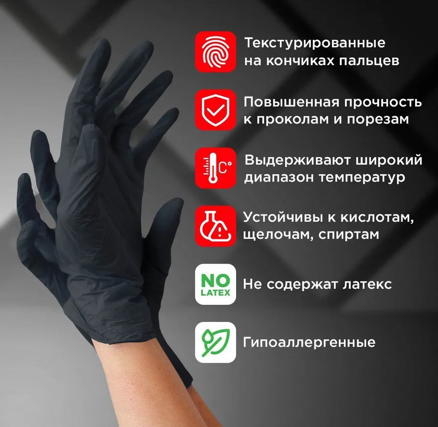 MedMarket перчатки одноразовые нитриловые черные, 3 г. M 50 пар/уп.