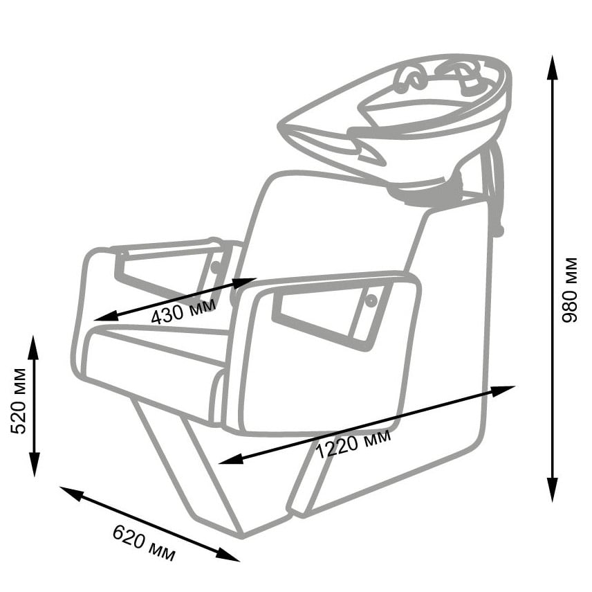 Парикмахерская мойка МД-08 В комплект парикмахерской мойки для головы МД-08 входит: Металлический каркас, окрашенный в черный цвет влагостойкой порошковой краской Кресло, обитое экокожей Раковина глубокая белого или черного цвета На каркас мойки установлена верхушка парикмахерского кресла МД-201 Раковина комплектуется узлом наклона, смесителем и душиком. Обивка кресла может быть изготовлена в любом понравившемся цвете экокожи, представленной в нашем каталоге!Внимание! При выборе данной мойки - крепление парикмахерской мойки к полу - обязательно!Размеры (ВхШхД):980x620x1220 мм