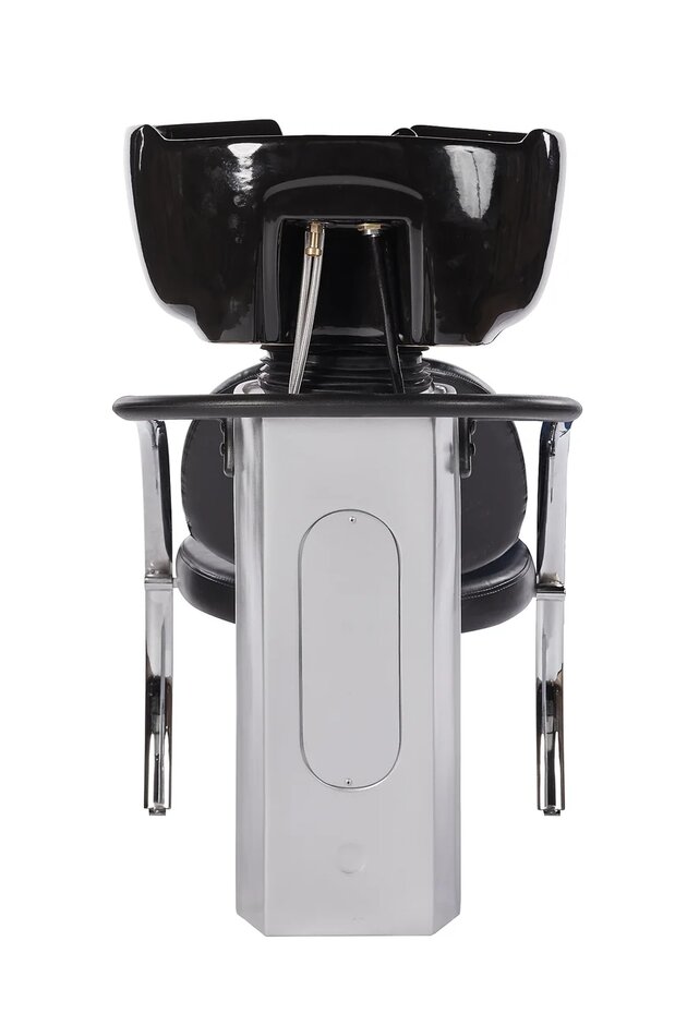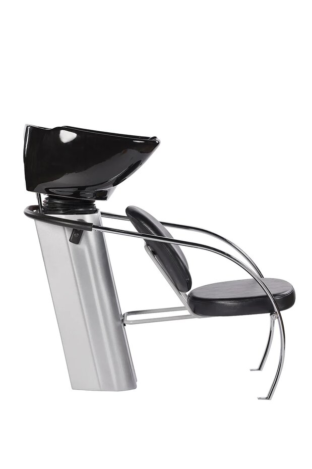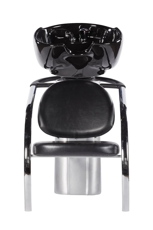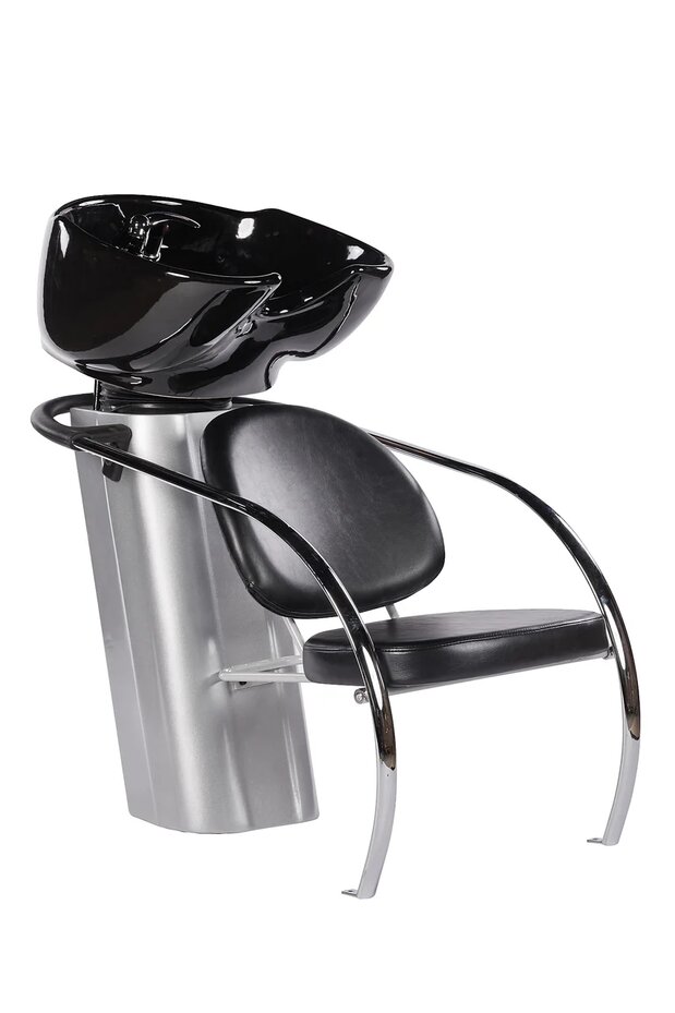 Мойка с креслом, на черном каркасе. Мойка комплектуется глубокой керамической раковиной с регулировкой угла наклона и комплектом смесителя с черной лейкой душа. Каркас кресла выполнен из металла, мягкие элементы кресла обтянуты искусственной кожей высшего качества, металлические подлокотники в порошковом покрытии черного цвета. Размер (ДхШхВ): 59х110х96