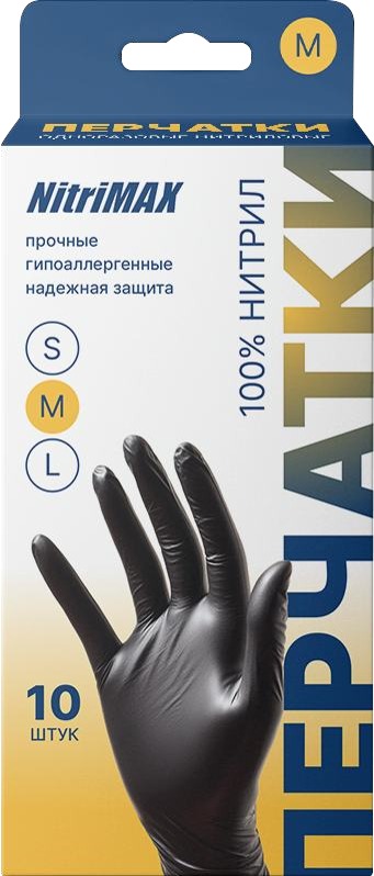 NitriMax перчатки одноразовые нитриловые черные, 3,5 г. M 5 пар/уп.