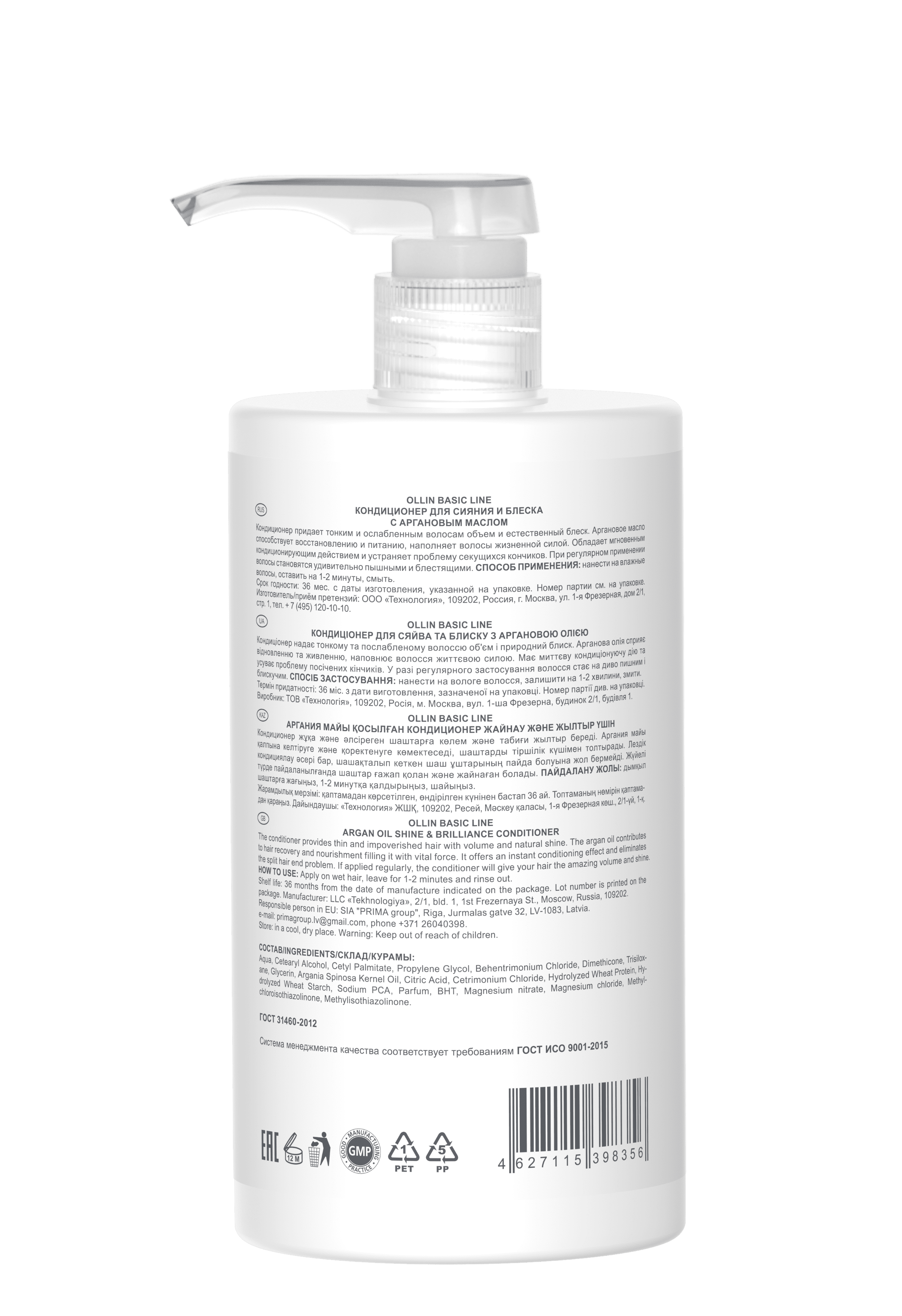 OLLIN BASIC LINE Кондиционер для сияния и блеска с аргановым маслом 750мл
