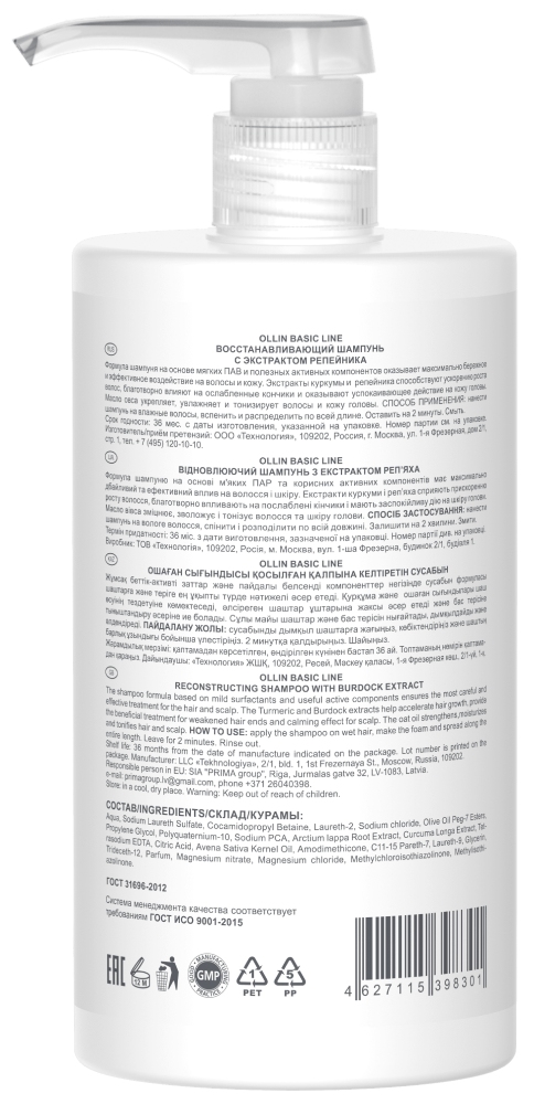 OLLIN BASIC LINE Восстанавливающий шампунь с экстрактом репейника 750мл