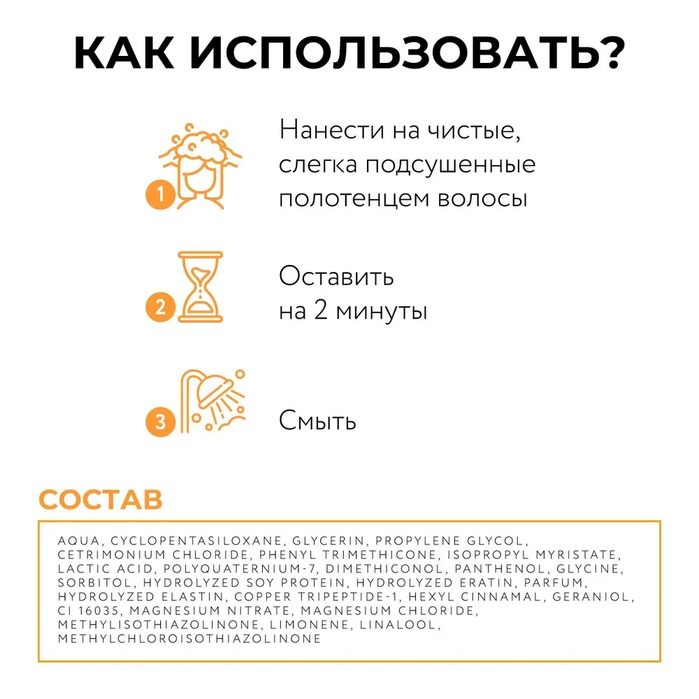 после использования шампуня, нанесите на влажные волосы и аккуратно расчешите, оставьте на 2-3 минуты, затем смойте. Использовать в паре с Ollin Professional BioNika Nutrition And Shine Shampoo.
