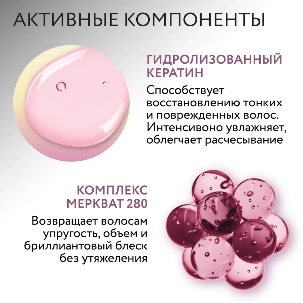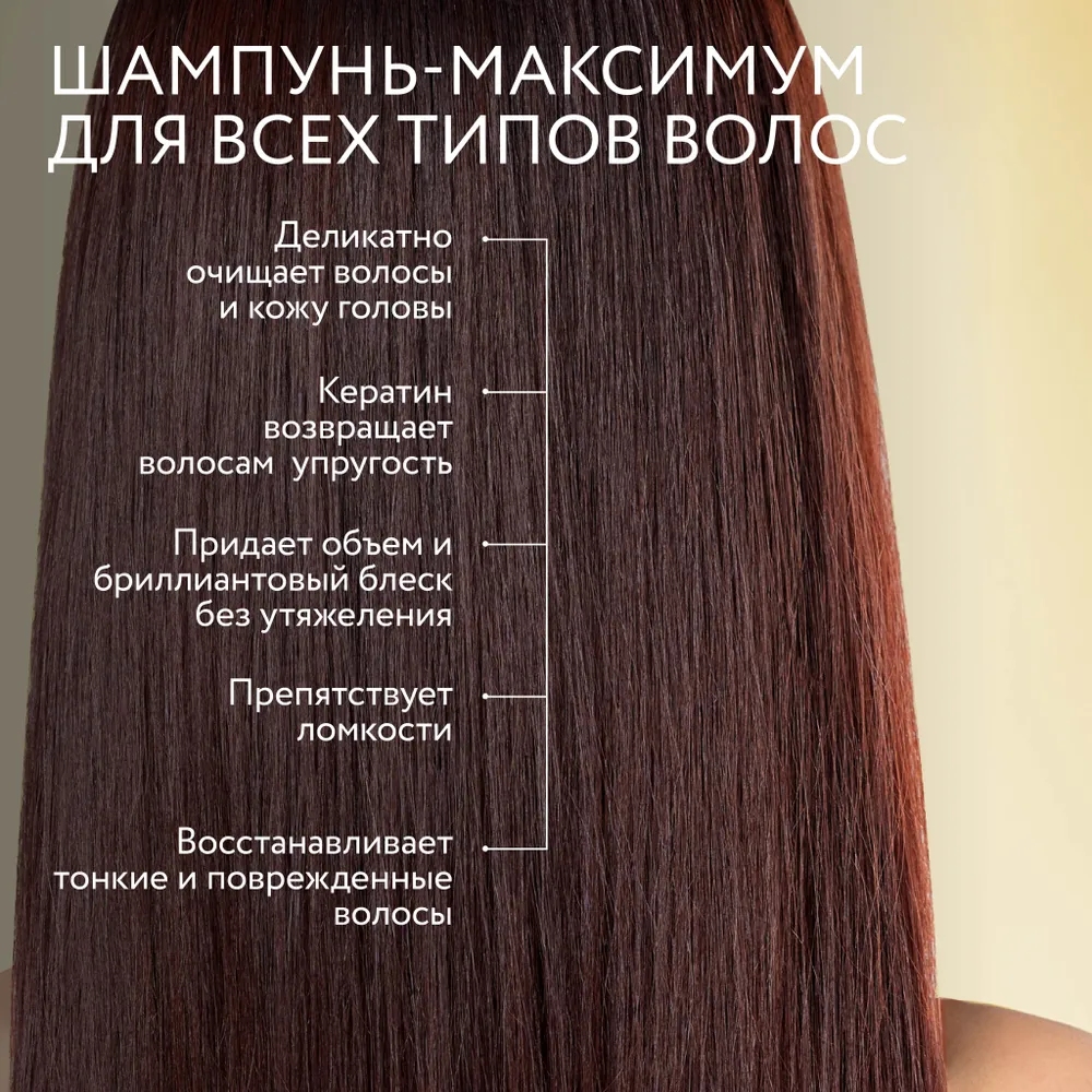 Подготовительный этап. Шампунь - обеспечивает деликатное очищение волос и кожи головы и подготавливает их к дальнейшей процедуре восстановления. Благодаря высокой концентрации кератина шампунь возвращает волосам упругость, объем и бриллиантовый блеск без утяжеления. Способствует восстановлению тонких и поврежденных волос. Не содержит парабенов и силиконов.