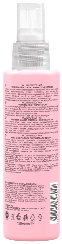 OLLIN PERFECT HAIR FRESH MIX Фруктовая сыворотка для волос 120мл