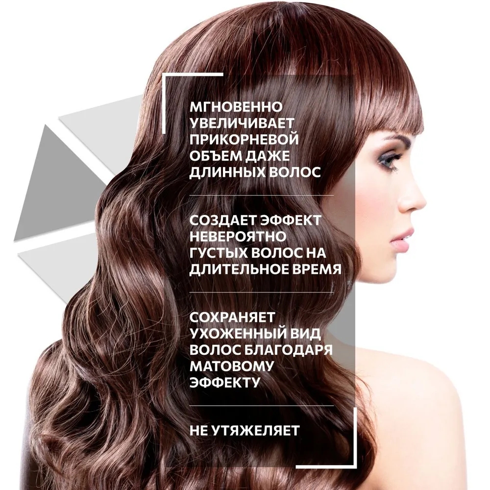 Легкая моделирующая пудра мгновенно увеличивает прикорневой объем даже длинных волос. Не перегружает волосы и создает эффект невероятно густых волос на длительное время. Благодаря матовому эффекту волосы сохраняют чистый и ухоженный вид, а прическа приобретает невероятный объем.