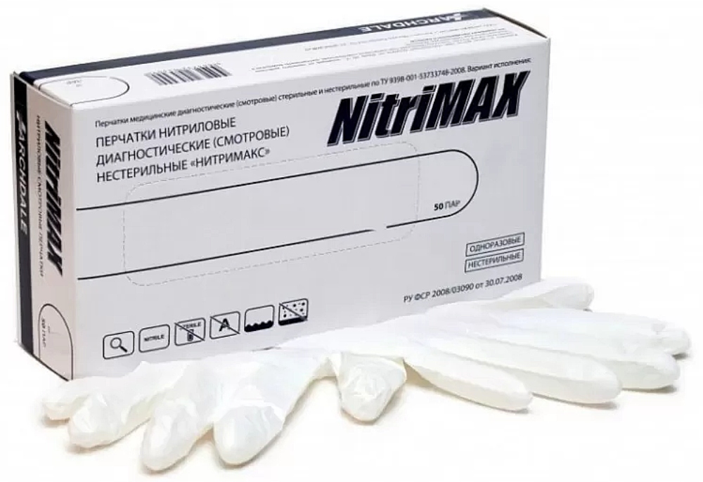 Перчатки однораз.нитриловые NitriMax белые, 3,9 г. S 50 пар/уп. (Малайзия)