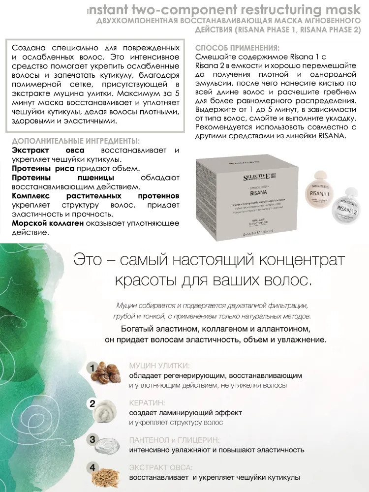 SELECTIVE RISANA Двухкомпонентная восстанавливающая маска мгновенного действия (1+1)*15 мл