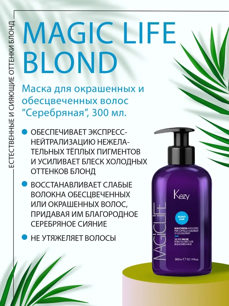 Серебрянная маска для окрашенных или осветленных волос, 300 мл. Magic Life KEZY