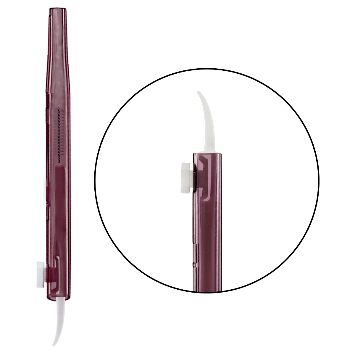 Щеточка бейби-браш (Baby Brush) — двусторонний вспомогательный инструмент с выдвижным механизмом для расчесывания, разделения бровей и ресниц, нанесения и распределения составов и краски в ходе ламинирования, наращивания ресниц, долговременной укладки бровей, реконструкции ресниц и бровей. Бейби-браш незаменима на завершающем этапе процедуры — с ее помощью легко придать бровям и ресницам желаемую финальную форму. Подходит для ежедневной укладки бровей в домашних условиях, для ухода за наращенными ресницами, расчесывания и разделения слипшихся волосков. Щеточку можно преподнести клиенту в качестве приятного комплимента по окончании процедуры. Инструмент имеет двусторонний выдвижной механизм с двумя наконечниками — щеточкой и заостренным многофункциональным кончиком. С помощью переключателя рабочую поверхность одним движением можно убрать внутрь ручки, что позволяет защитить щеточку от пыли и попадания инородных частиц. Не требуется никаких дополнительных колпачков, которые так часто теряются! В рабочем состоян