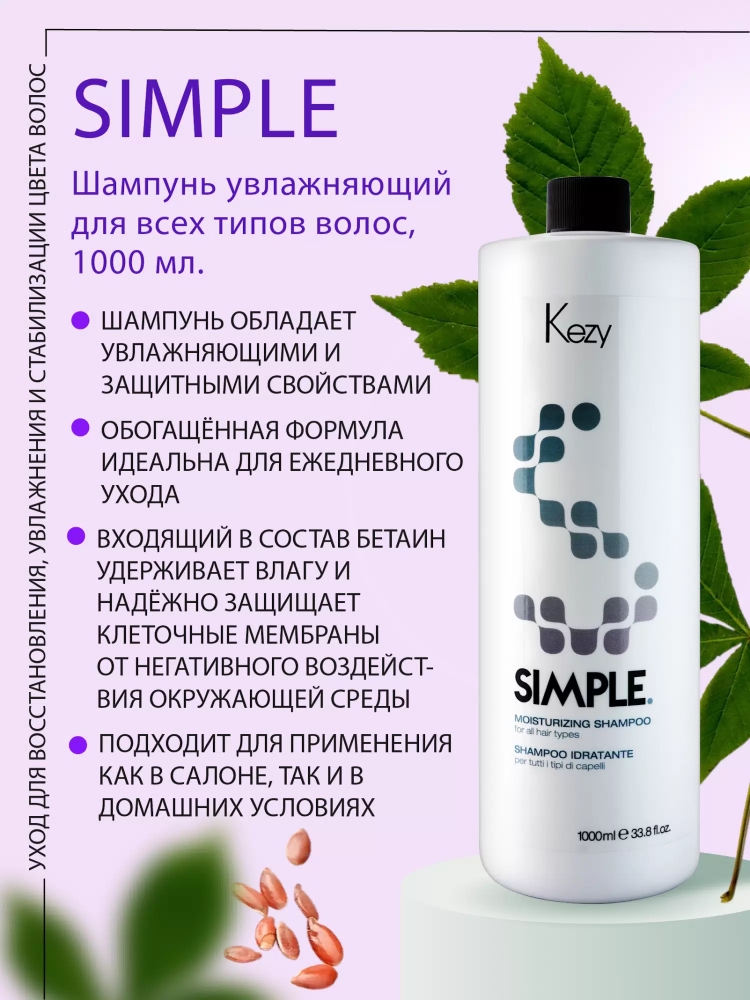 Шампунь увлажняющий для всех типов волос, 1000 мл. Simple KEZY