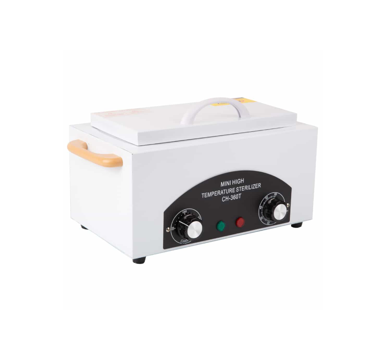 Сухожаровой шкаф CH-360Tпредназначен для дезинфекции маникюрных и педикюрных инструментов до процедуры, а также для чистки после. Внутренний блок термического стерилизатора изготовлен из нержавеющей стали. Внутри прибора есть специальный съемный контейнер для хранения и стерилизации инструментария. Сухожаровой шкаф CH-360T оснащен всеми необходимыми функциями для качественной стерилизации: -Таймер + лампочка-индикатор работы таймера. Таймер позволит контролировать время стерилизации, которое определяется в зависимости от степени загрязнения и материала, из которого изготовлен инструмент. Доступны такие временные режимы: от 0 до 60 минут. Когда время стерилизации окончено, таймер сообщит об этом звуковым сигналом; -Регулятор температуры + лампочка-индикатор работы. С помощью регулятора температуры станет возможным настроить необходимые температурный режим для стерилизации. Температура определяется в зависимости от материала инструмента. Доступный температурный режим: от 0 до 220°C. Технические характеристики: