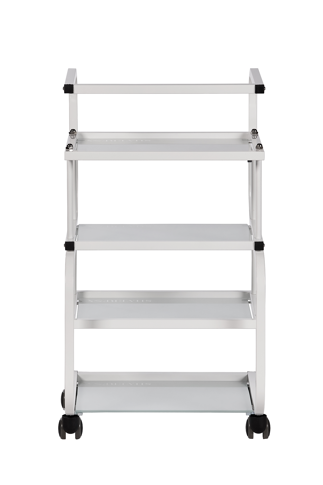 Косметологическая тележка H01 изготовлена из металла и оснащена полками из закаленного стекла. Модель разработана для косметологических центров, поэтому материал, который используется при создании тележки является особо прочным и долговечным. Столик H01 в своей основе имеет прочный металлический каркас, 4 открытые стеклянные полки из матового стекла. На каждой из полок имеются небольшие (0.5см) бортики, которые помогают инструментам оставаться на полке и не падать на пол. Данная модель имеет ручку для удобного перемещения тележки по кабинету. Базовые цвета: белый. Габариты: 45(Ш) x 82(В) x 39(Г)