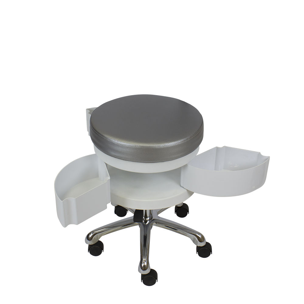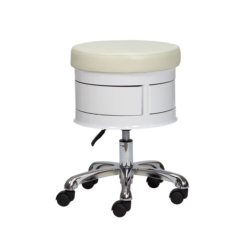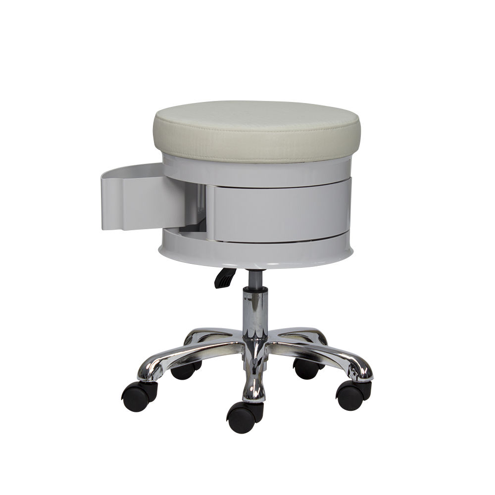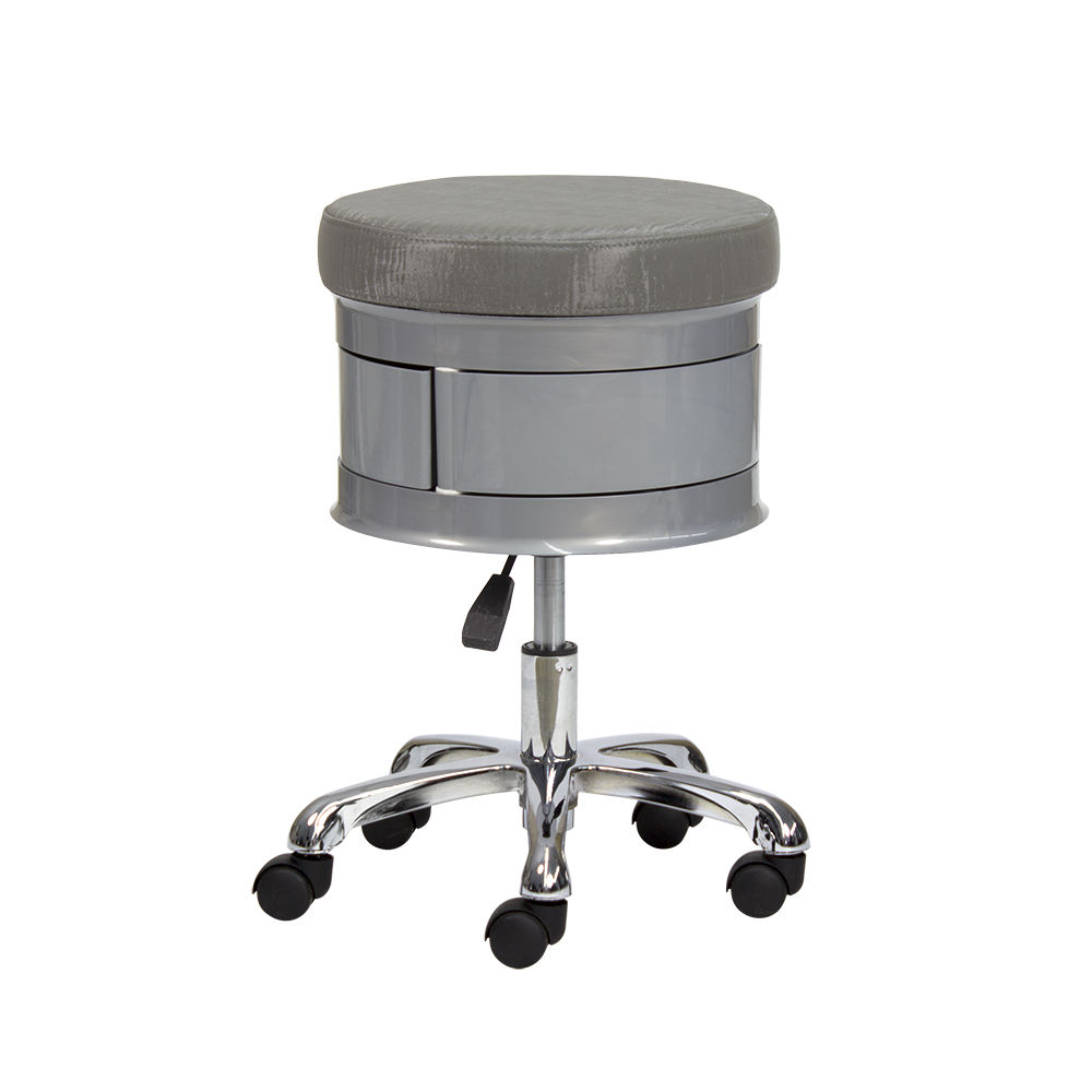 Стул мастера Giroco Pablo Производитель: Giroco (Испания – Россия) Комплектация: сидение, основание-пятилучье, тумба с тремя ящичками, газ-патрон. Характеристики: Сидение: обивка из водостойкой экокожи, внутри наполнитель из упругого поролона. Основание: пятилучье из прочной хромированной стали. Тумба: пластик, 3 ящичка. Расцветки ящиков: зеленый, фиолетовый, красный, черный, серый, белый, прозрачный. Цвет: белый, серый, черный. Стул мастера Giroco Pablo – функциональное, компактное и удобное оборудование, с которым мастер позабудет об усталости. Для комфортной посадки предусмотрено мягкое сидение. В нижней части есть практичные ящики, чтобы держать необходимый инструмент во время проведения процедур. Для удобного перемещения стул укомплектован поворотными колесиками. Теперь не придется лишний раз вставать и передвигать мебель вручную. С помощью пневматического механизма регулируется высота стула, что позволит подобрать удобное положение. Для изготовления оборудования Giroco используются только к