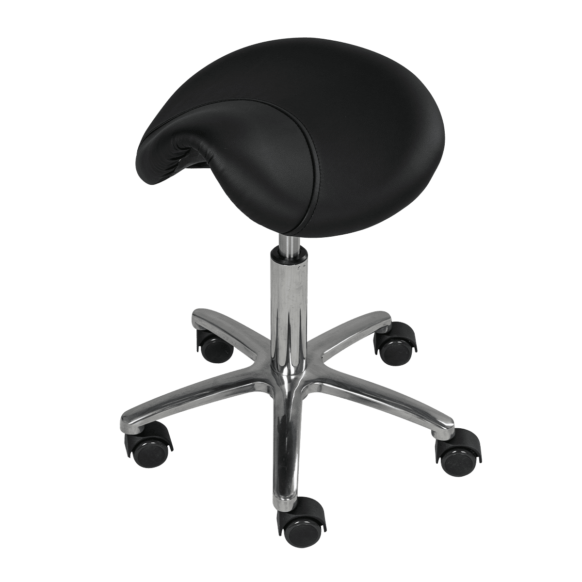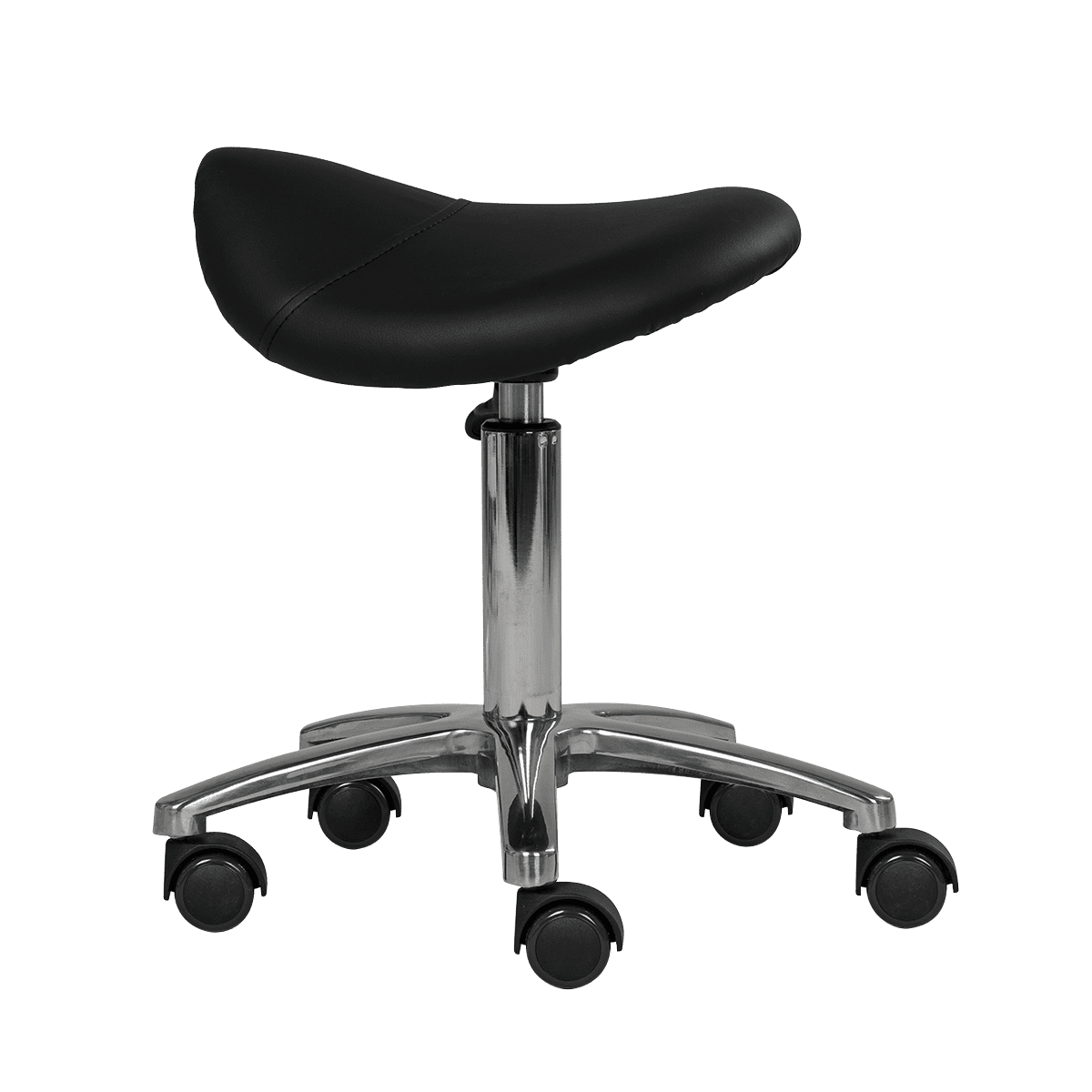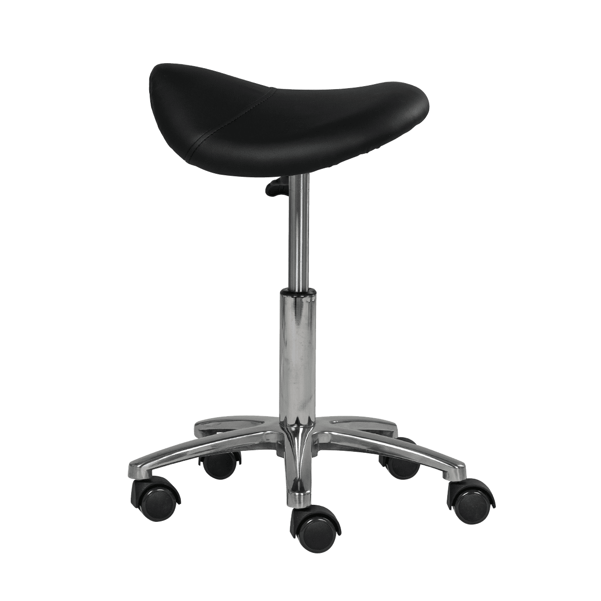 Стул-седло без спинки МД-901 Производитель: Китай. Комплектация: сиденье, металлический каркас, хромированное основание, пневматика. Характеристики стула мастера седло без спинки МД-901: Обивка сиденья: плотный поролон, обит влагоустойчивой качественной экокожей. Основание: устойчивое пятилучье из хромированного металла на колесах. Регулировка высоты: пневматика. Функциональный стул мастера седло без спинки МД-901 с опорой для ног. Каркас выполнен из прочного металла и выдерживает достаточно большие нагрузки. Высота стула регулируется при помощи газлифта. В процессе производства сиденья применяется износоустойчивый плотный поролон и качественная экокожа. Обивочный материал является долговечным и влагоустойчивым, что немало важно для профессионального салонного оборудования. Стулья данной конфигурации, с сиденьем в форме седла, пользуются популярностью среди профессионалов. Такой стул позволяет снизить утомляемость и предотвращает появление болей в спине и ногах на протяжении и после рабочего дня.