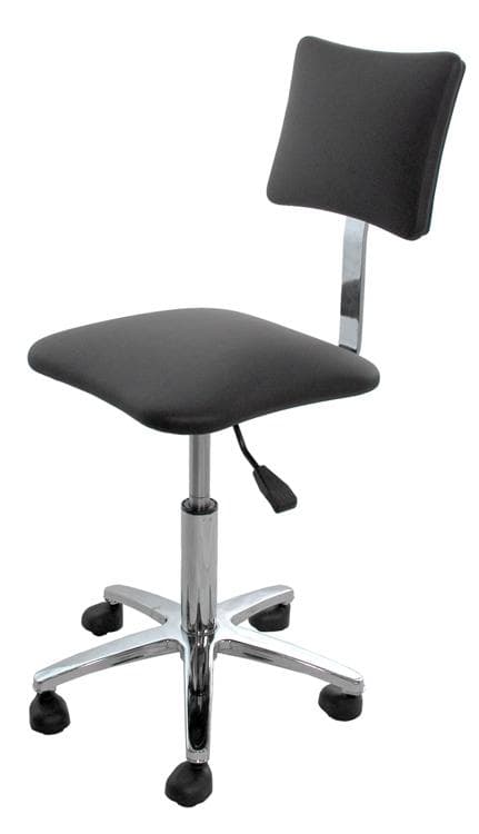 Стул для мастера С-7 со спинкой. Комплектуется низким пневматическим подъемником и хромированным пятилучьем на колесах без опоры для ног. Размер (ДхШ): 40х50 Базовые цвета: белый, слоновая кость, черный.Производитель Россия.