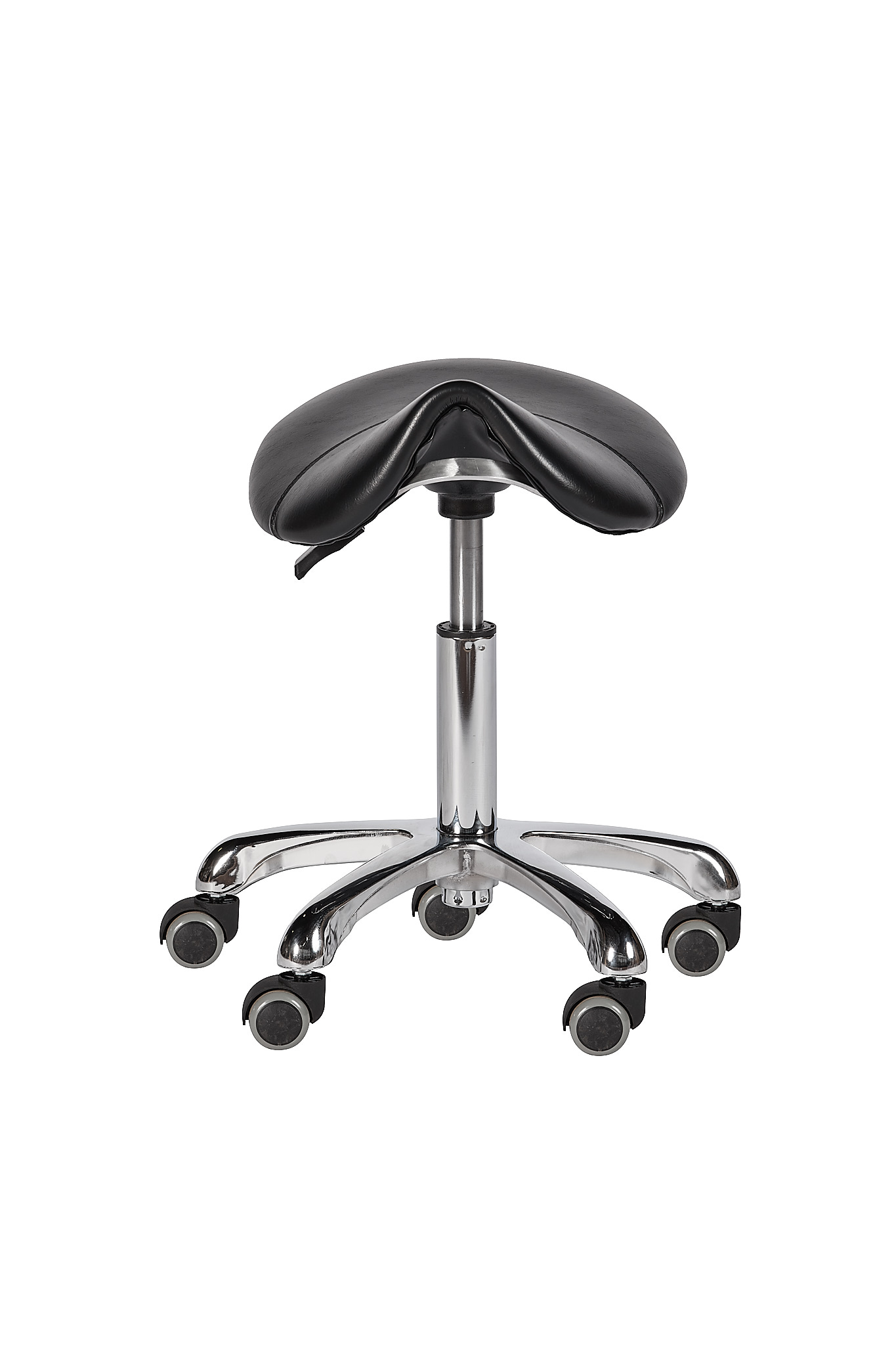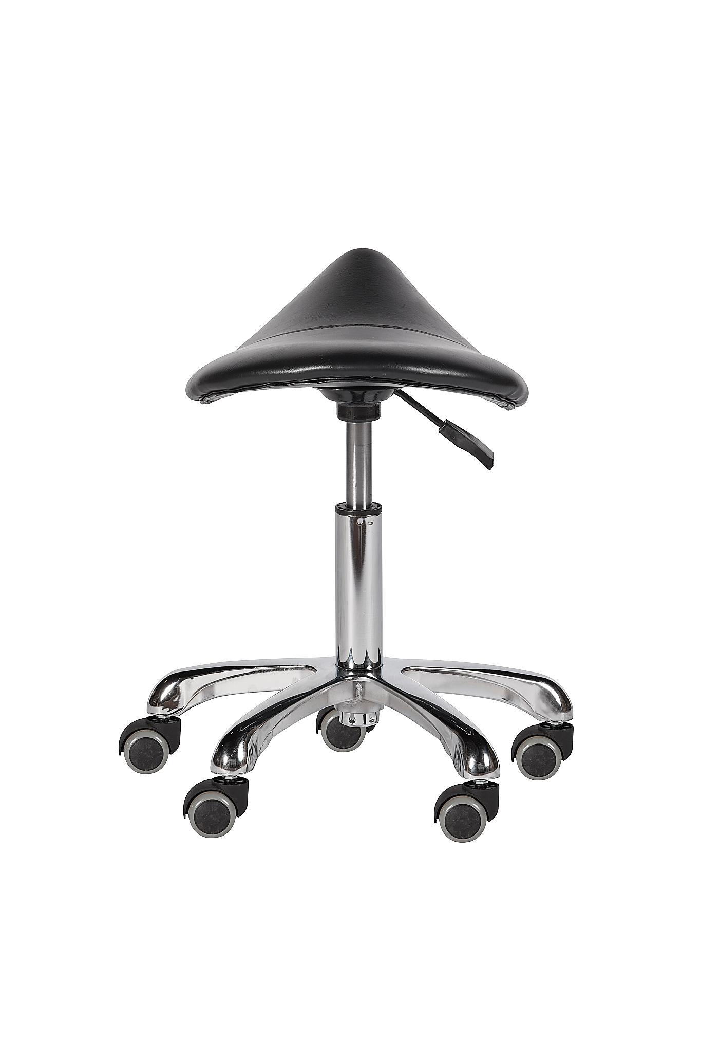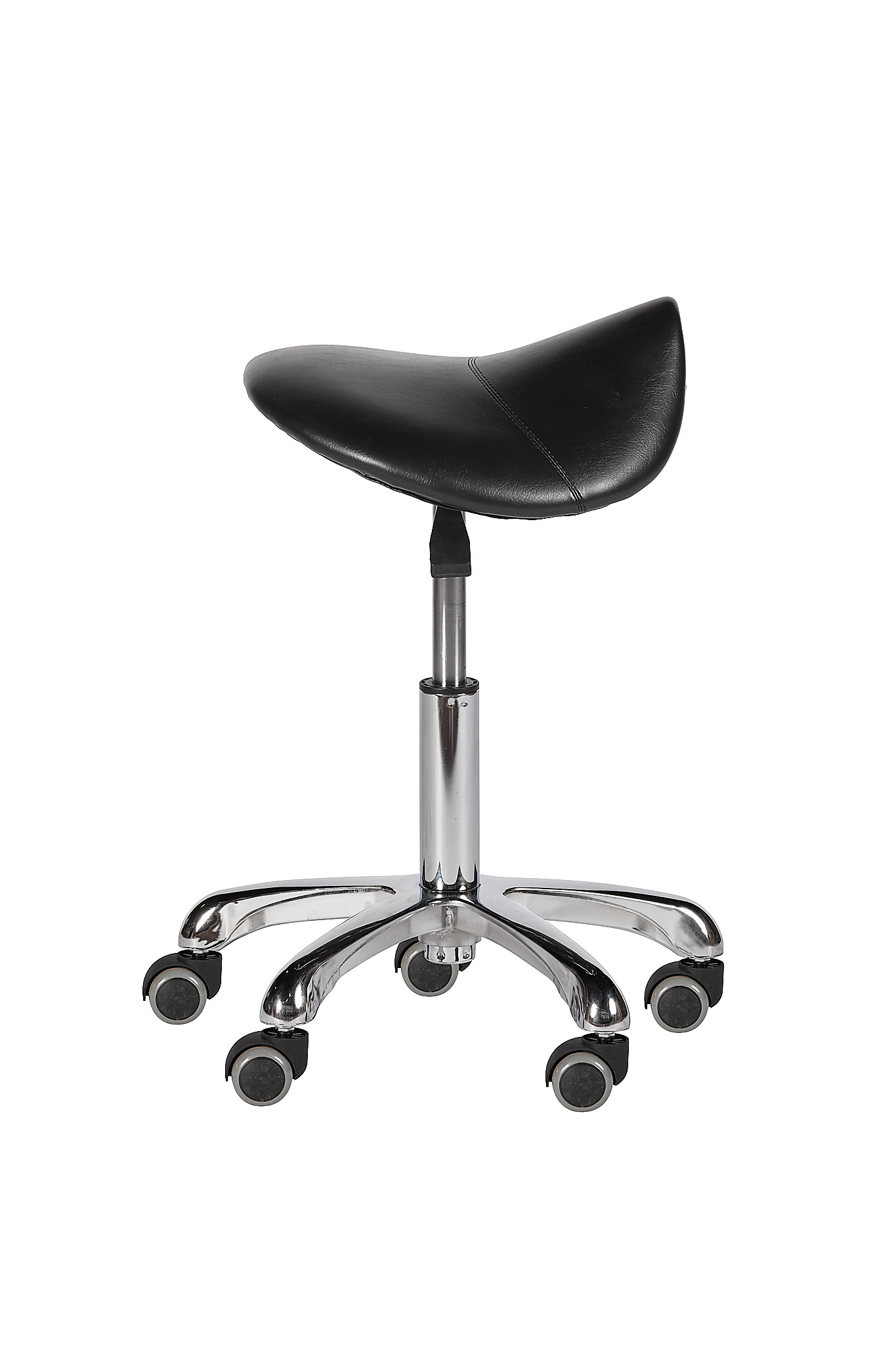 Удобный, модный, изящный стул для мастера салона красоты с пневматическим регулятором высоты и наклона сидения не только очень удобный для использования, но и способен подчеркнуть стиль вашего салона красоты. Стул выполнен в виде седла, благодаря чему мастеру удобно в нем сидеть в любом положении без дискомфорта и усталости. Модель укомплектована пневматическим регулятором высоты и наклона сидения, пятилучьем из хромированной стали на роликовых колесиках. Материал обивки - качественный кожзам. Габариты стула: 45х63 см.