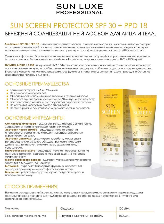 SUN LUXE Солнцезащитный лосьон для лица и тела SPF 30+ 100 мл