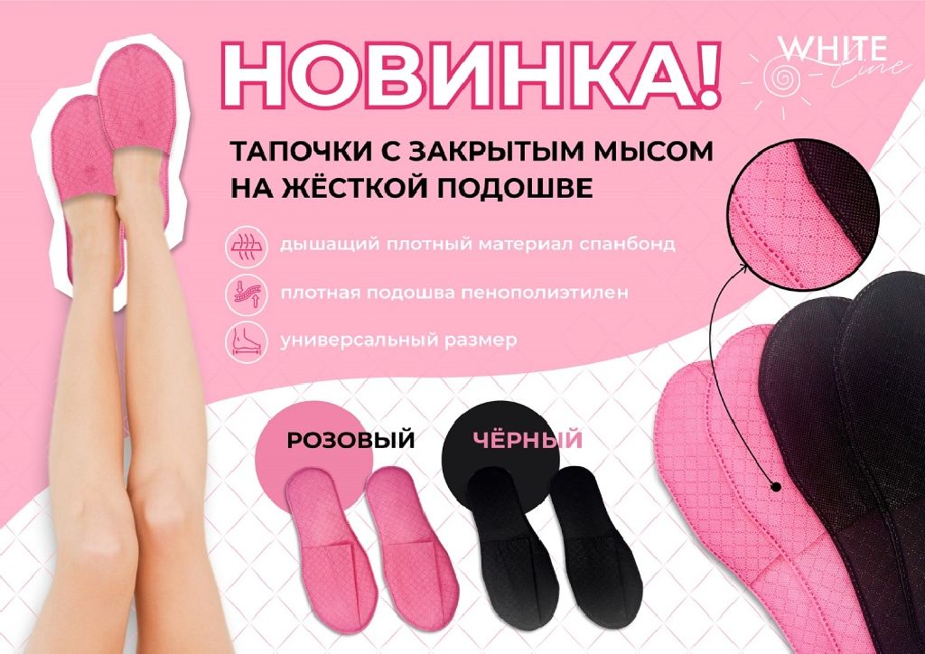 Тапочки с закрытым мысом спанбонд/пенополиэтилен, тисненые розовые - 1 пара