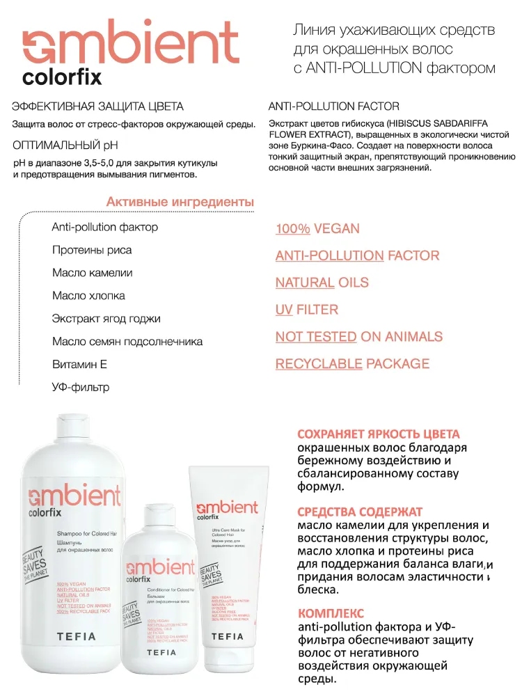 TEFIA AMBIENT Colorfix Маска-уход для окрашенных волос 250 мл