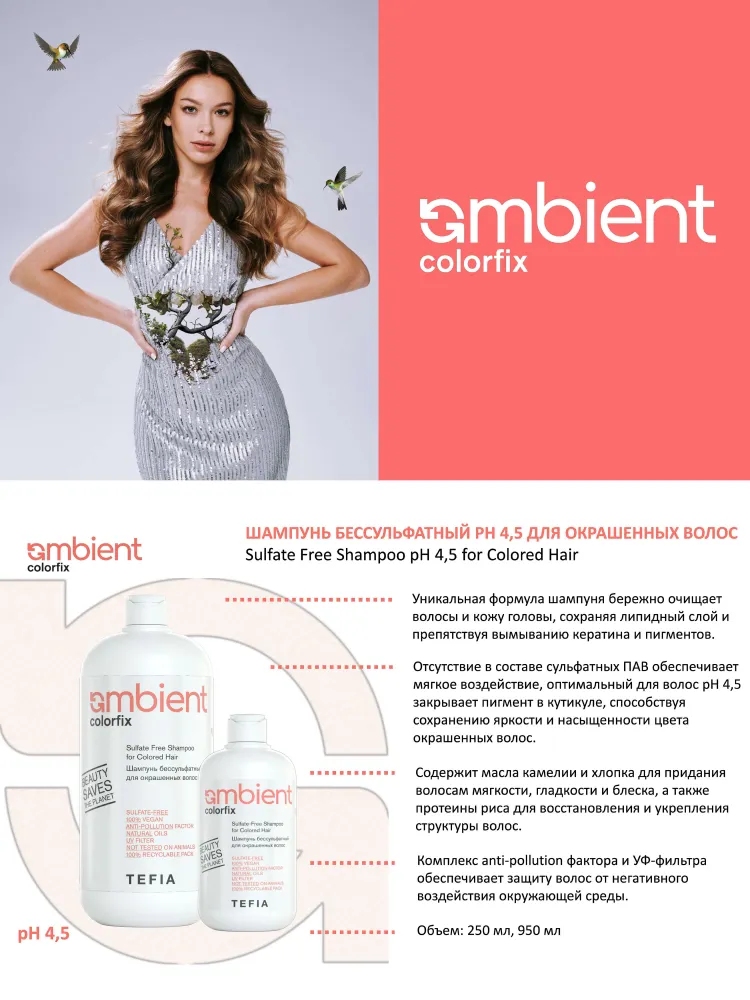 TEFIA AMBIENT Colorfix Шампунь бессульфатный 4.5 pH для окрашенных волос 250 мл