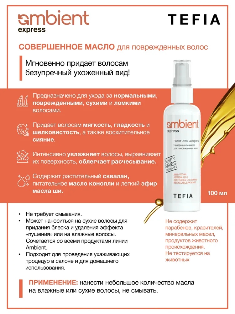 TEFIA AMBIENT EXPRESS Совершенное масло для поврежденных волос 100 мл