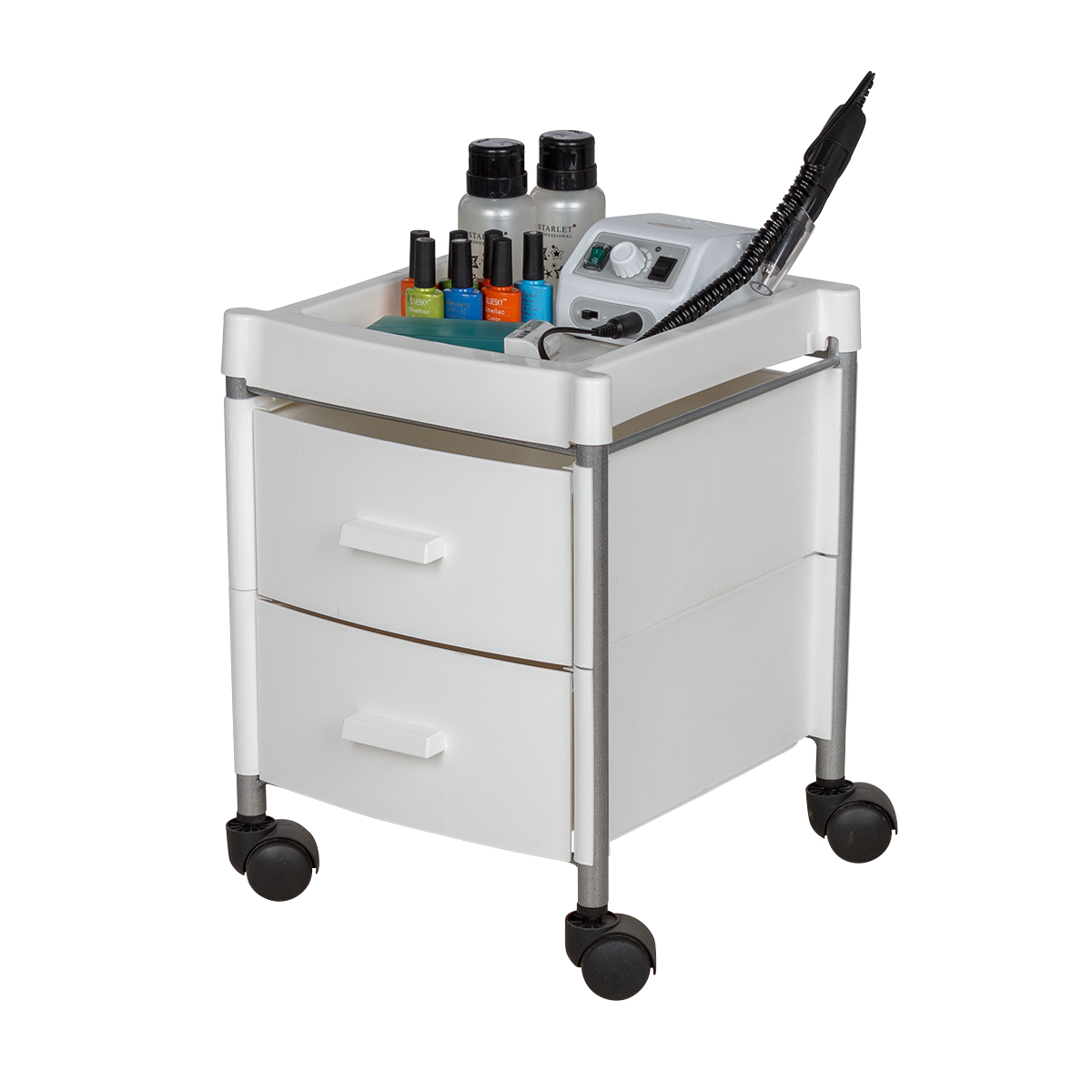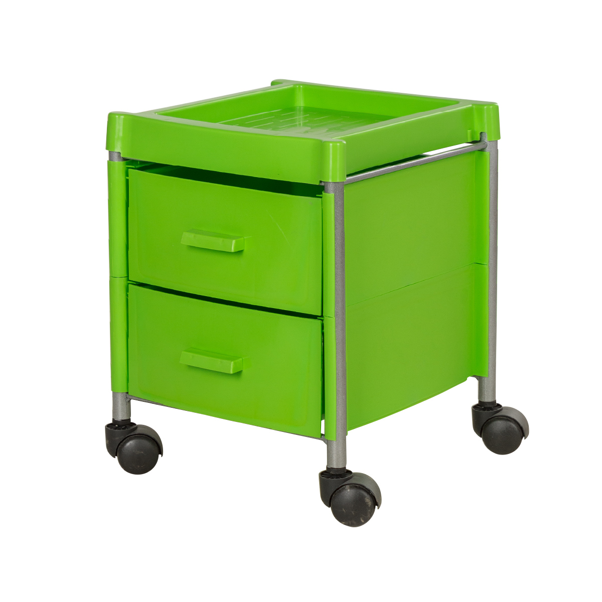 Тележка для инструментов Алана-02 Производитель: Компания Мэдисон Комплектация: каркас, боковые панели, 2 ящика, крышка, колеса Характеристики: Каркас: прочный металл с защитой от коррозии и влаги Боковые панели: качественный пластик Крышка: пластиковая, ударопрочная Ящики: износоустойчивый пластик Колеса: пластиковые, поворотные Доступные цвета: белый, черный, фиолетовый, розовый, зеленый Размеры (ВхШхГ):465х440x365 мм Тележка для инструментов Алана-02 – практичный элемент мебели, который позволит содержать рабочее место в порядке. Тележка укомплектована двумя вместительными ящиками. Для инструментов, используемых во время рабочего процесса, на тележке предусмотрена крышка. Для быстрого и бесшумного перемещения, тележка для педикюра оснащена четырьмя поворотными колесами. Благодаря компактным размерам тележка может быть использована даже в небольшом кабинете. Каркас изготовлен из прочных металлических трубок. Боковые панели и ящики выполнены из качественного пластика. Износоустойч