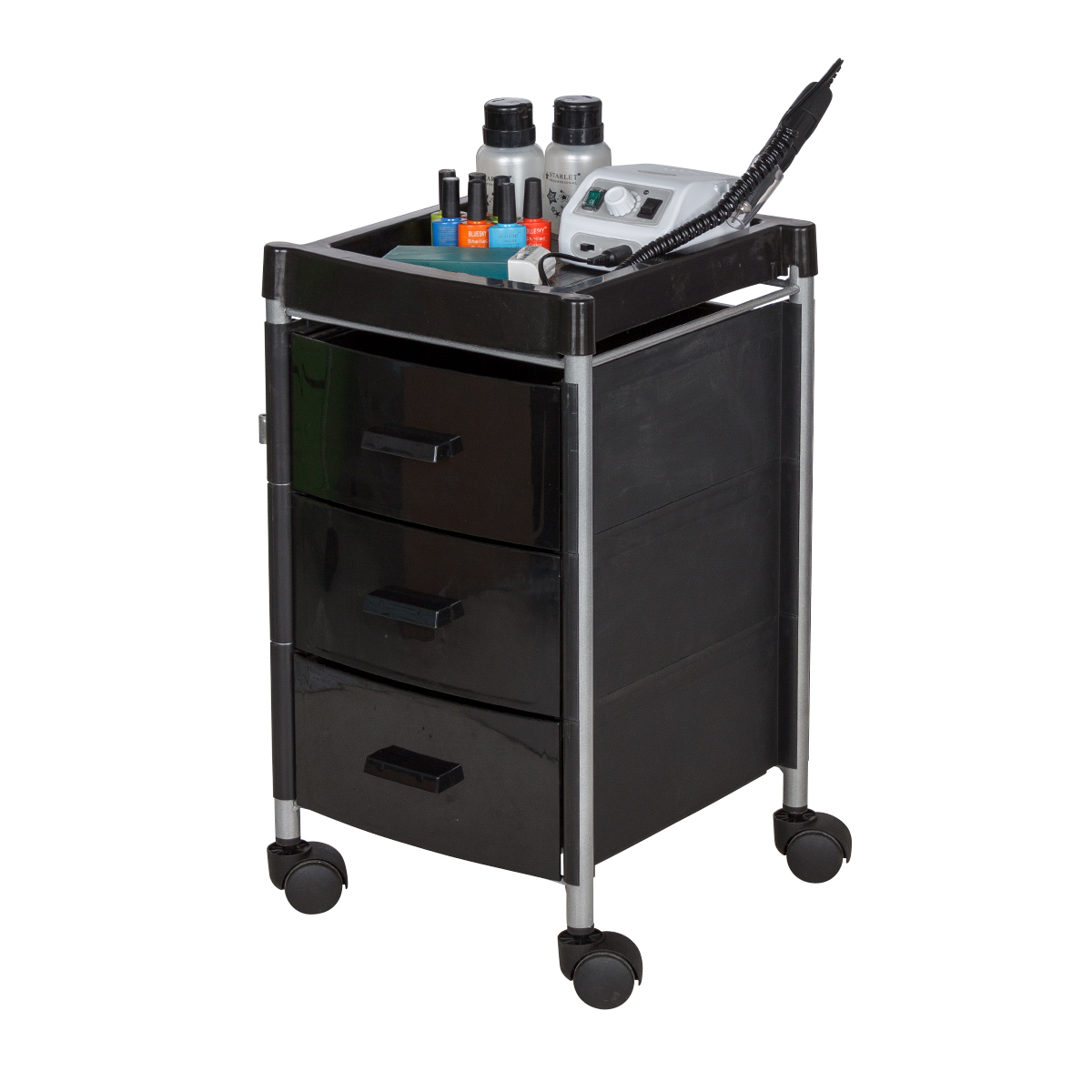 Тележка для инструментов Алана-03 Производитель: Компания МэдисонКомплектация: каркас, 3 ящика, боковые панели, крышка с отверстиями, колесики Характеристики: Каркас: металл, надежно защищен от коррозии Боковые панели: пластиковые Крышка: ударопрочный пластик Ящики: качественный пластик Колеса: пластиковые, маневренные Доступные цвета: белый, черный, фиолетовый, розовый, зеленый, серебристый. Размеры (ВхШхГ):610х440x365 мм Тележка для инструментов Алана-03 создана для оптимизации рабочего пространства. Стильное оборудование гармонично дополнит интерьер салона с любым дизайнерским решением. Три ящика вместят все инструменты и расходные материалы, создав порядок на рабочем месте. Верхняя полка имеет отверстия разных диаметров. Здесь мастер может расставить инструменты, необходимые во время проведения процедур. Корпус установлен на поворотные колеса, что обеспечивает плавное и быстрое перемещение тележки по салону. Качественные материалы и фурнитура обеспечат долгий эксплуатационный срок. Для изгот