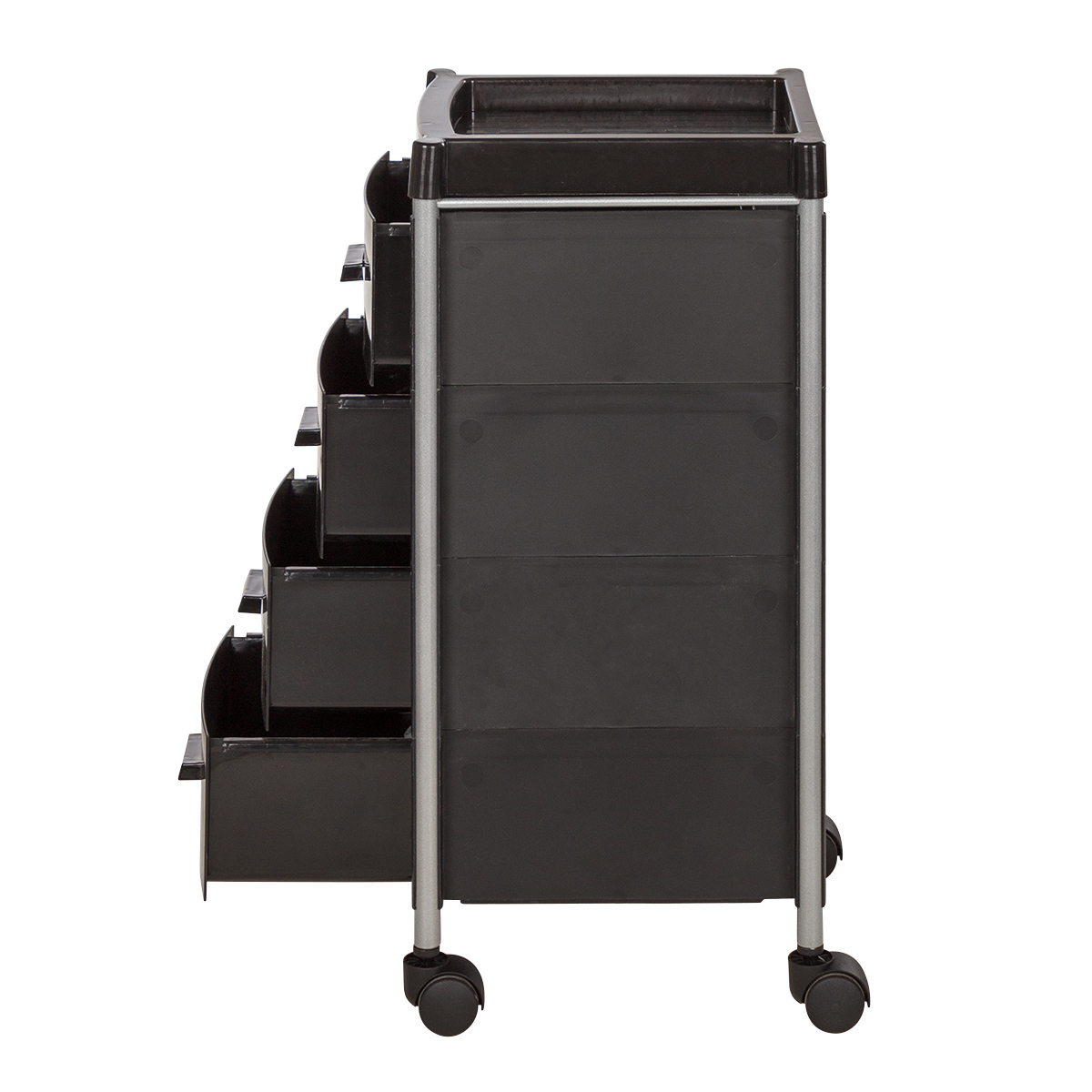 Тележка для инструментов Алана-04 Производитель: Компания МэдисонКомплектация: 4 ящика, каркас на маневренных колесах, стенки, крышка с отверстиями. Характеристики: Каркас: высокопрочный металл, защищенный от коррозии и влаги Боковые панели: ударопрочный пластик Крышка: пластиковая, с отверстиями Ящики: износоустойчивый пластик Колеса: пластиковые, вращающиеся Доступные цвета: белый, черный, фиолетовый, розовый, зеленый. Размеры (ВхШхГ):750х440x365 мм Тележка для инструментов Алана-04 – незаменимый элемент мебели, способный значительно облегчить работу мастера и повысить качество предоставляемых услуг. Тележка укомплектована четырьмя вместительными ящиками, где специалист может хранить инструменты в полном порядке. На крышке удобно поставить аппарат и сопутствующие инструменты, необходимые в рабочем процессе. Встроенные колеса помогают перемещать тележку по рабочей зоне без особых усилий. Стенки, ящики и крышка выполнены из легкого, но прочного пластика. Благодаря своим свойствам материал легк